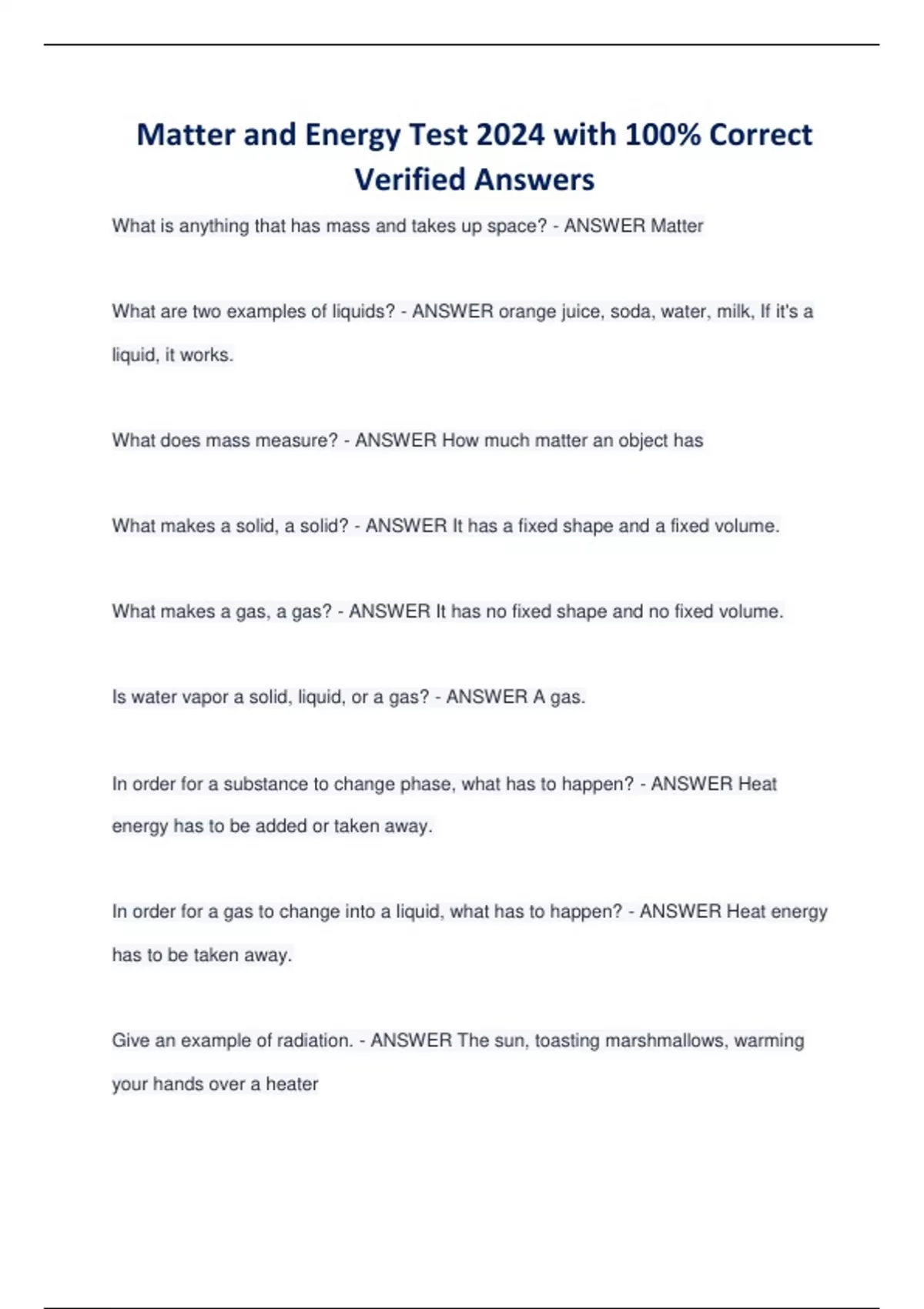 Matter and Energy EXAMS BUNDLE| Questions with 100% Correct Verified Answers