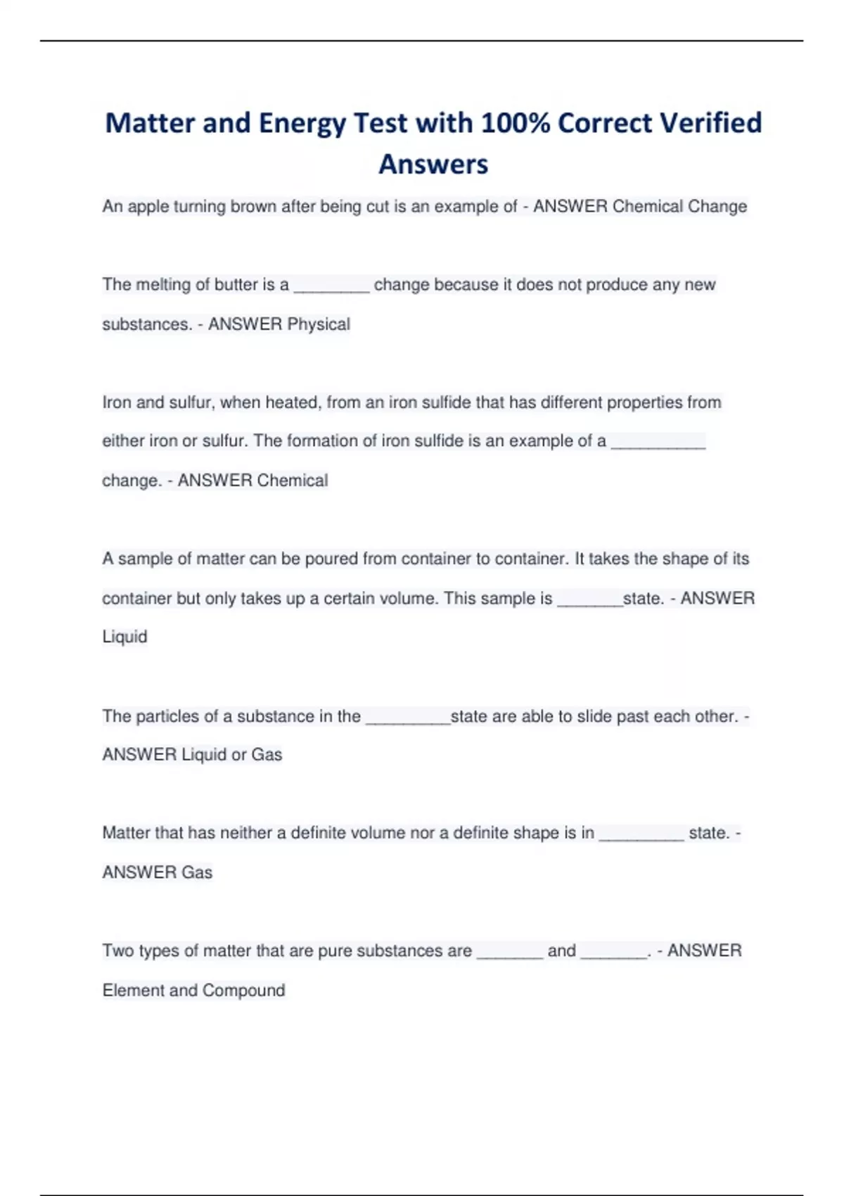 Matter and Energy EXAMS BUNDLE| Questions with 100% Correct Verified Answers