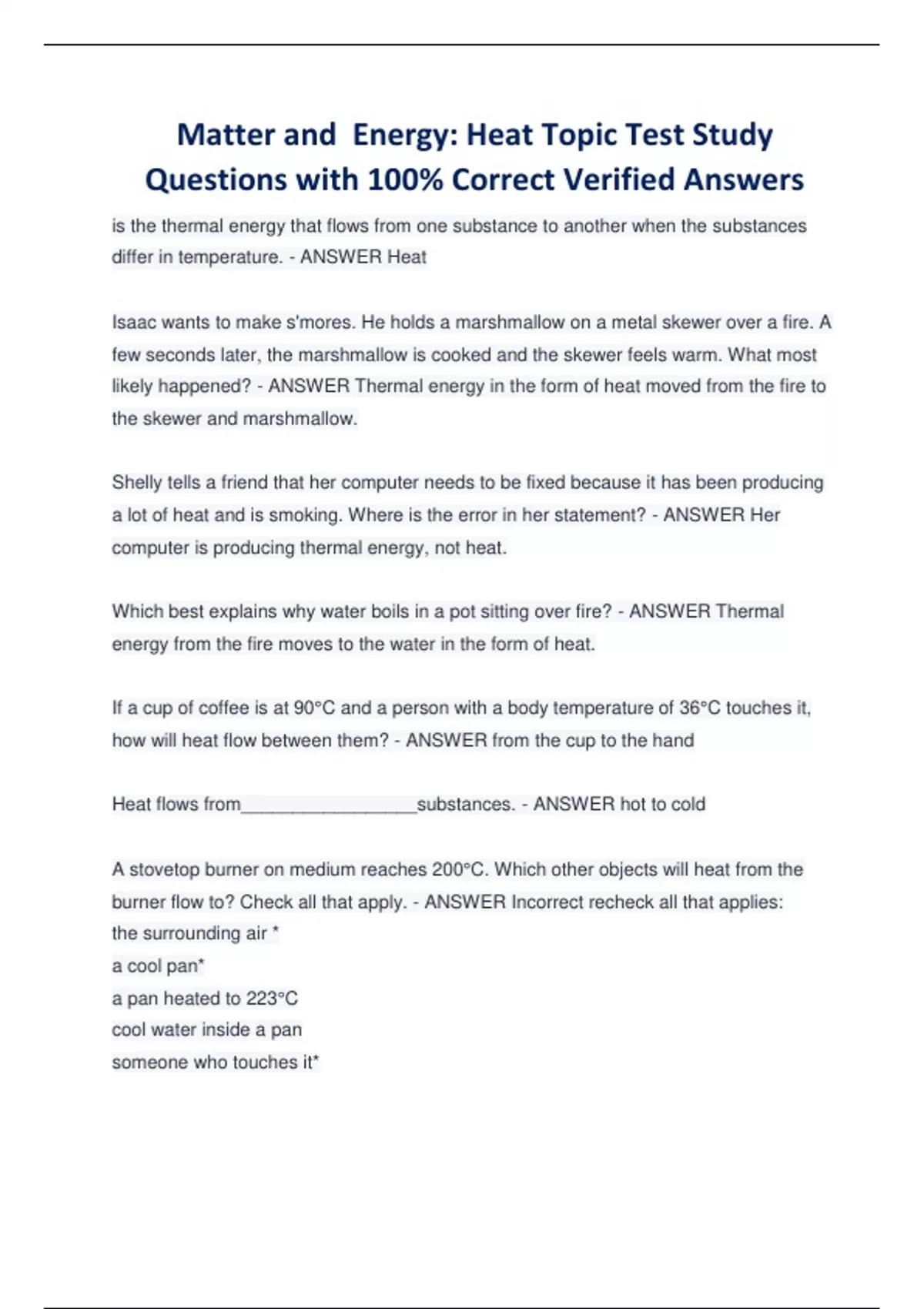 Matter and Energy: Heat Topic Test Study Questions with 100% Correct Verified Answers
