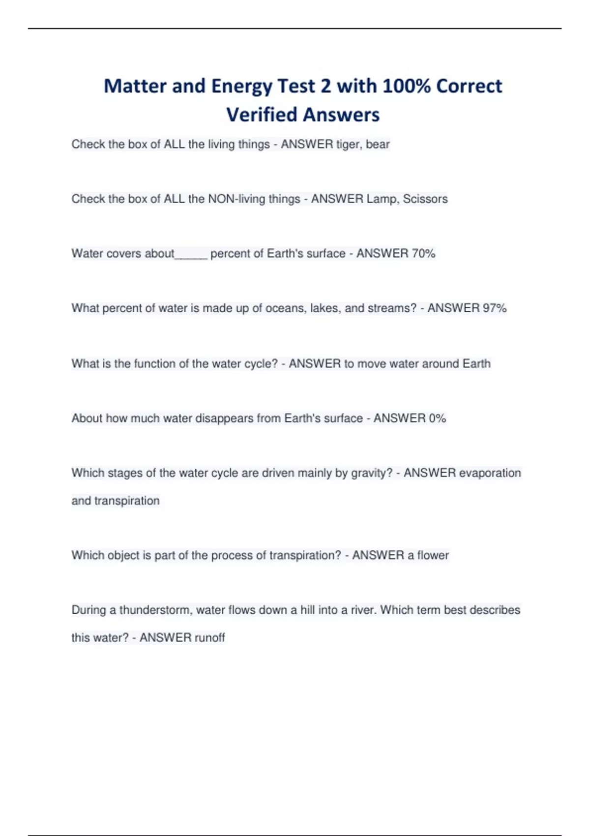 Matter and Energy EXAMS BUNDLE| Questions with 100% Correct Verified Answers