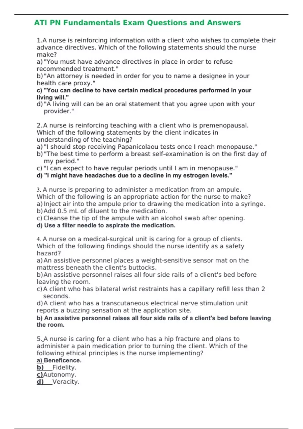 ATI PN Fundamentals Exam Questions and Answers