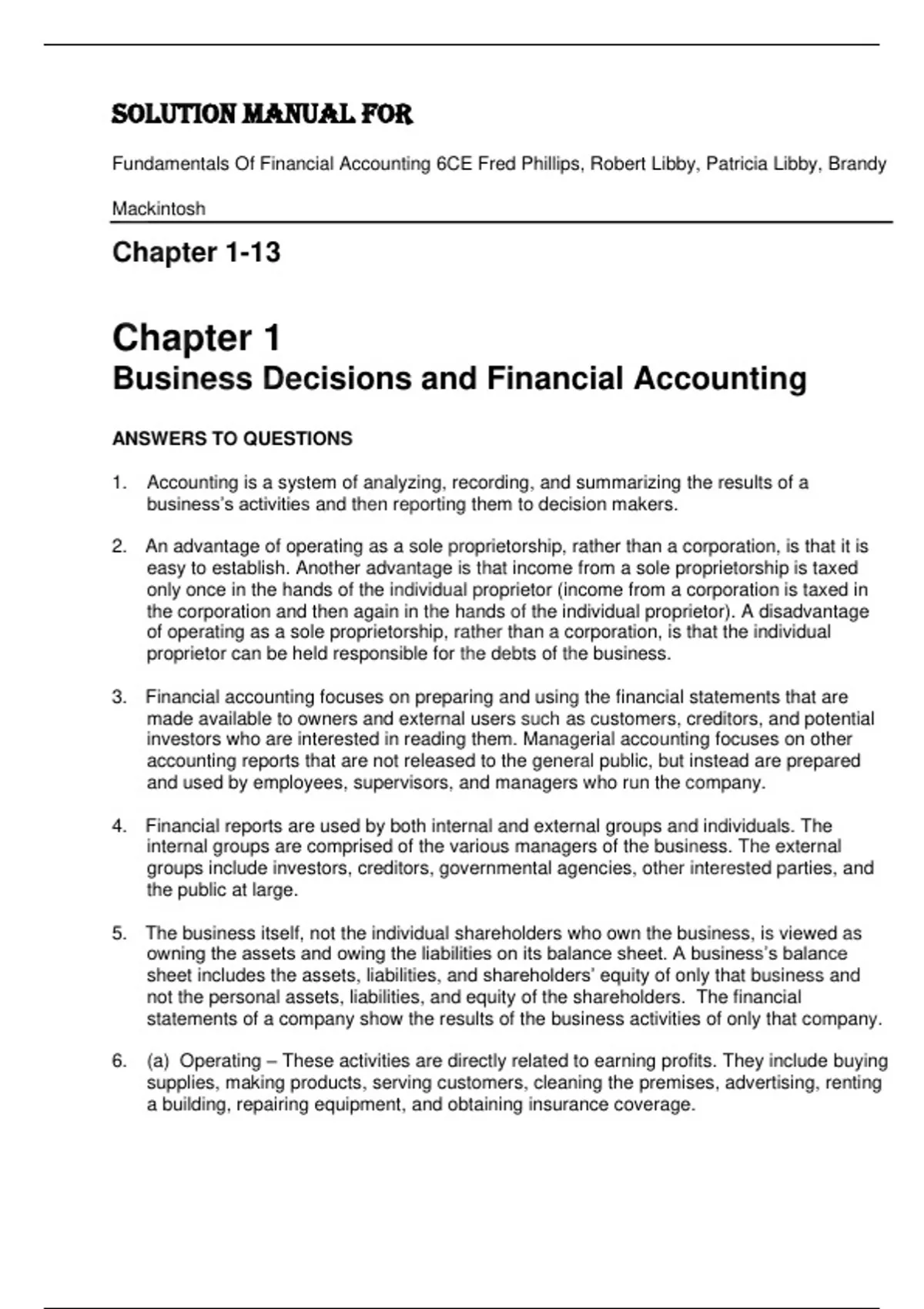 Phillips et al. Fundamentals of Financial Accounting, 6ce Solutions Manual