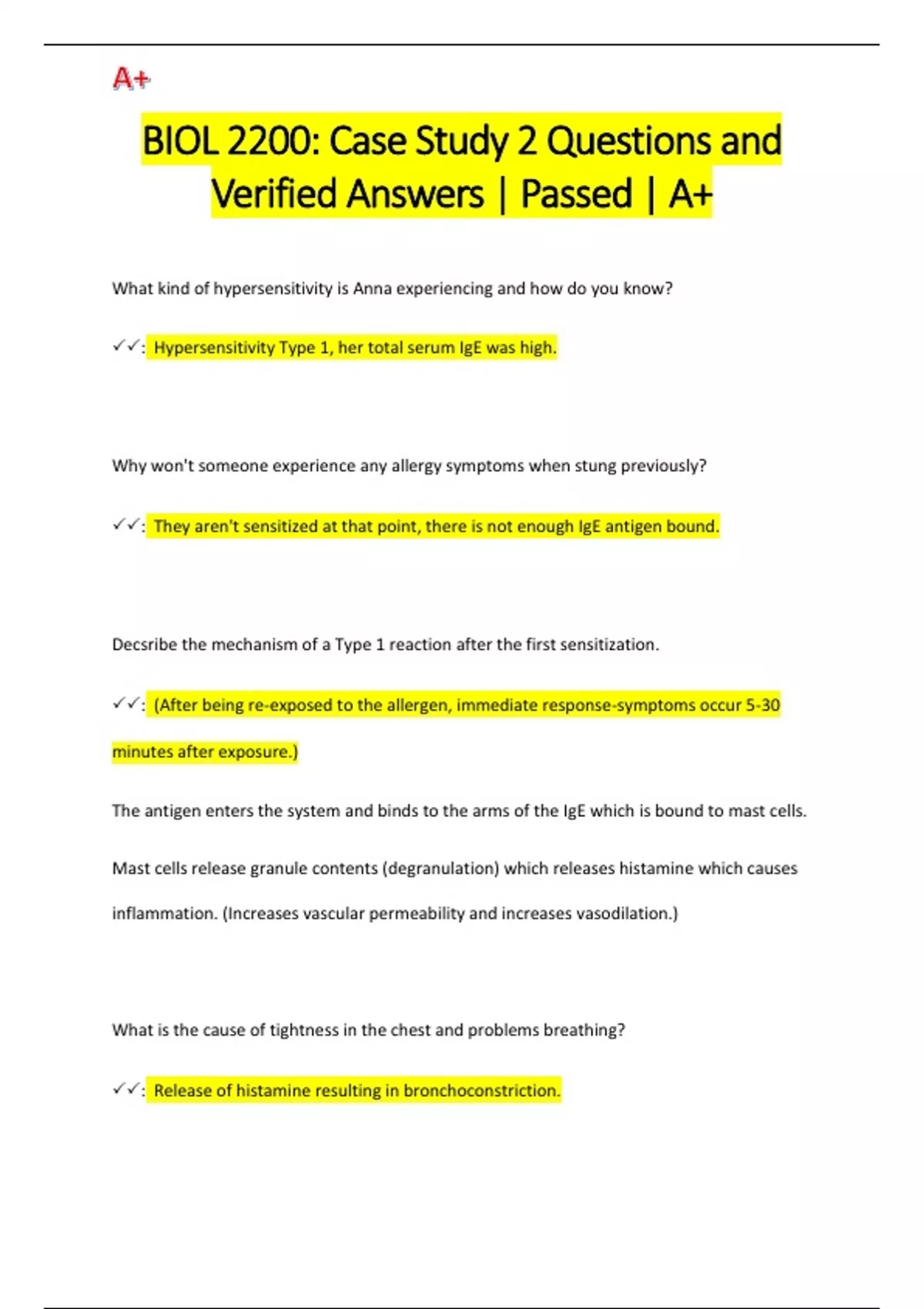 BIOL 2200: Case Study 2 Questions and Verified Answers | Passed | A+