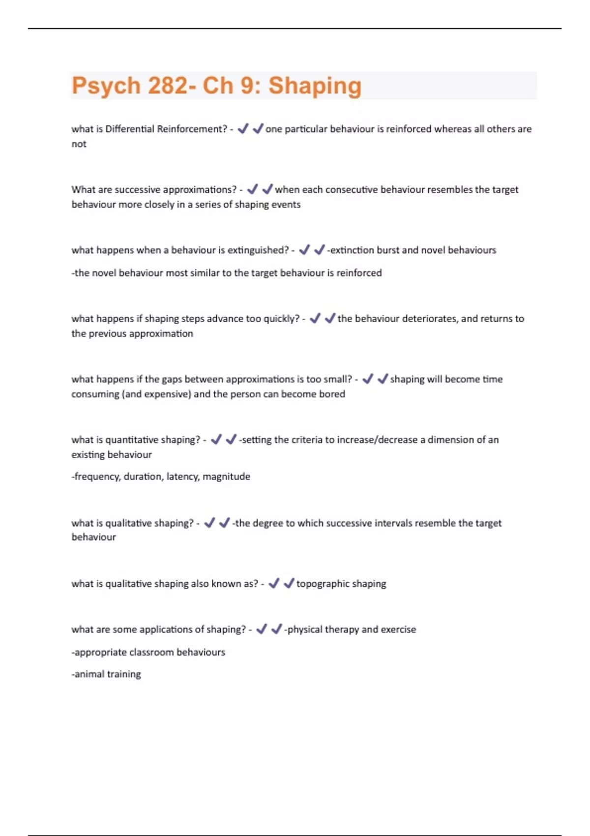 Psych 282- Ch 9: Shaping Questions And Answers Graded A+