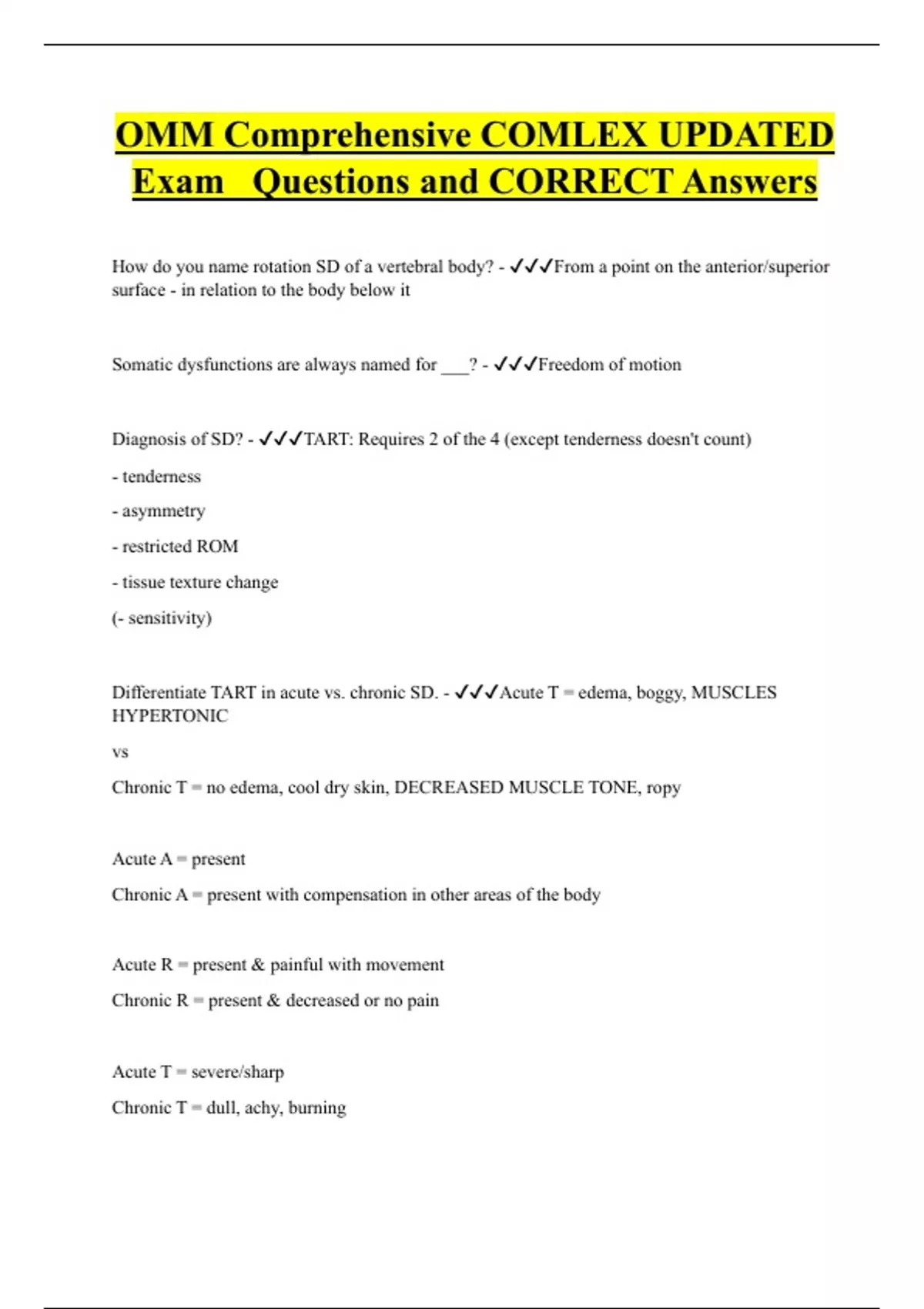 OMM Comprehensive COMLEX UPDATED Exam Questions and CORRECT Answers