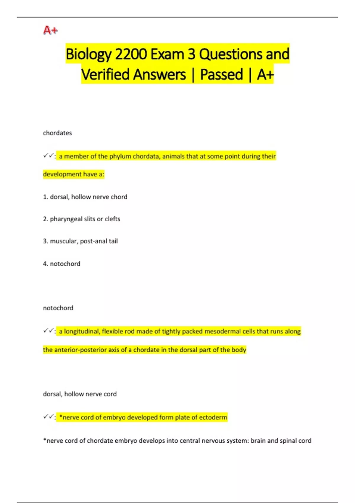 Biology 2200 Exam 3 Questions and Verified Answers | Passed | A+