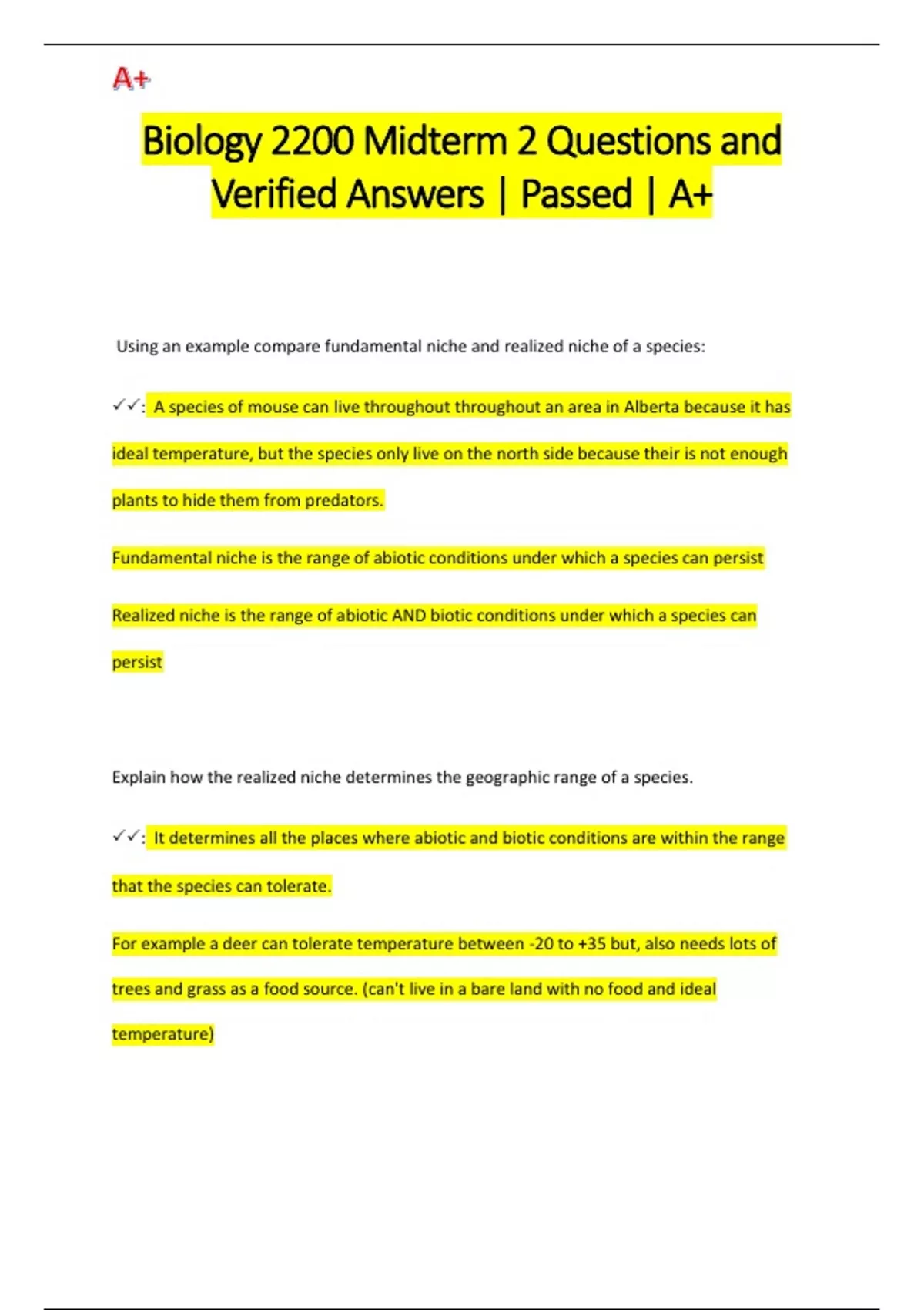 Biology 2200 Midterm 2 Questions and Verified Answers | Passed | A+