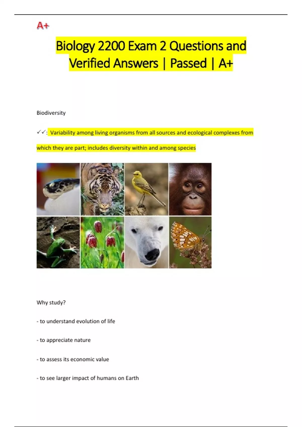 Biology 2200 Exam 2 Questions and Verified Answers | Passed | A+
