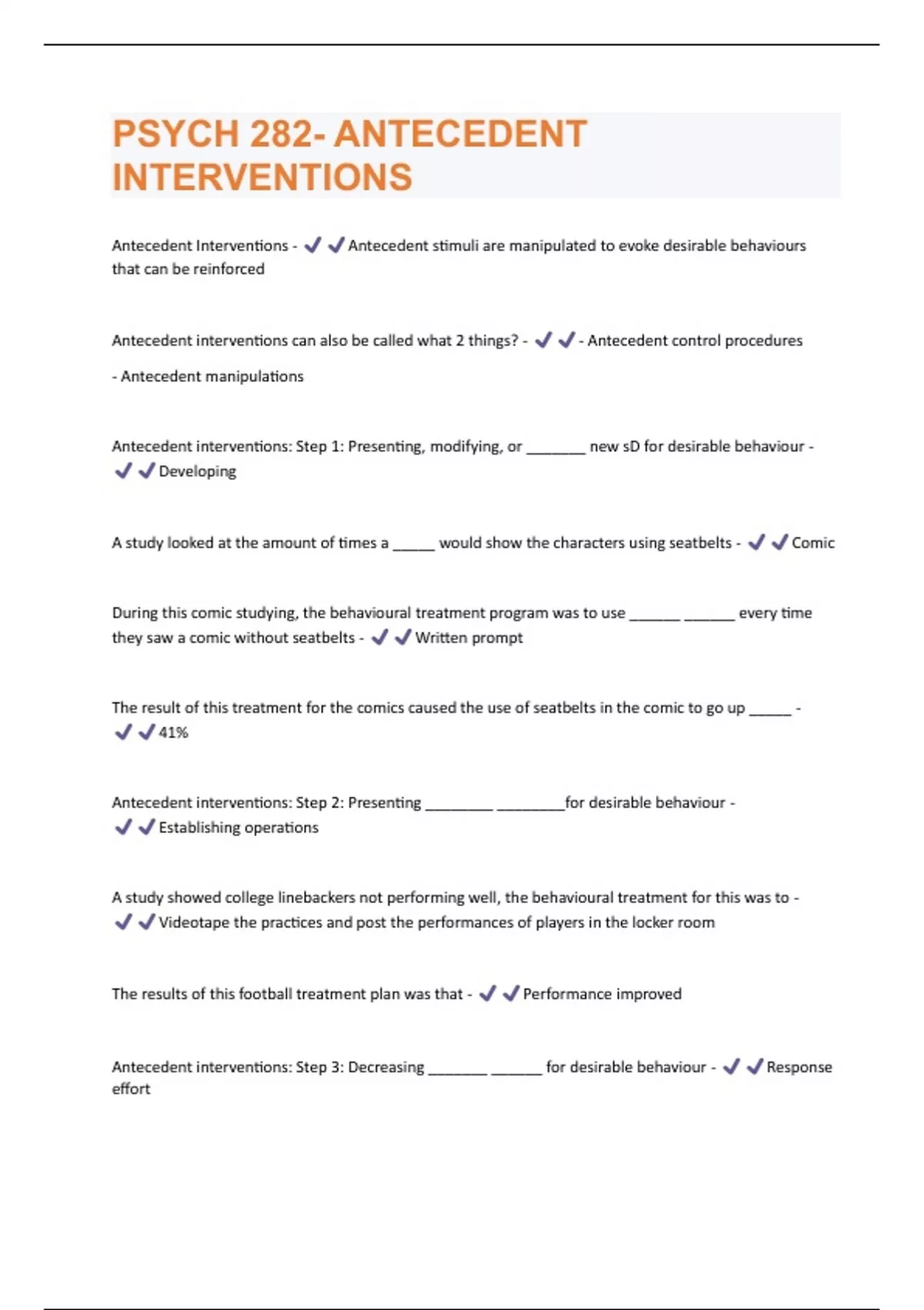 PSYCH 282- ANTECEDENT INTERVENTIONS QUESTIONS AND ANSWERS