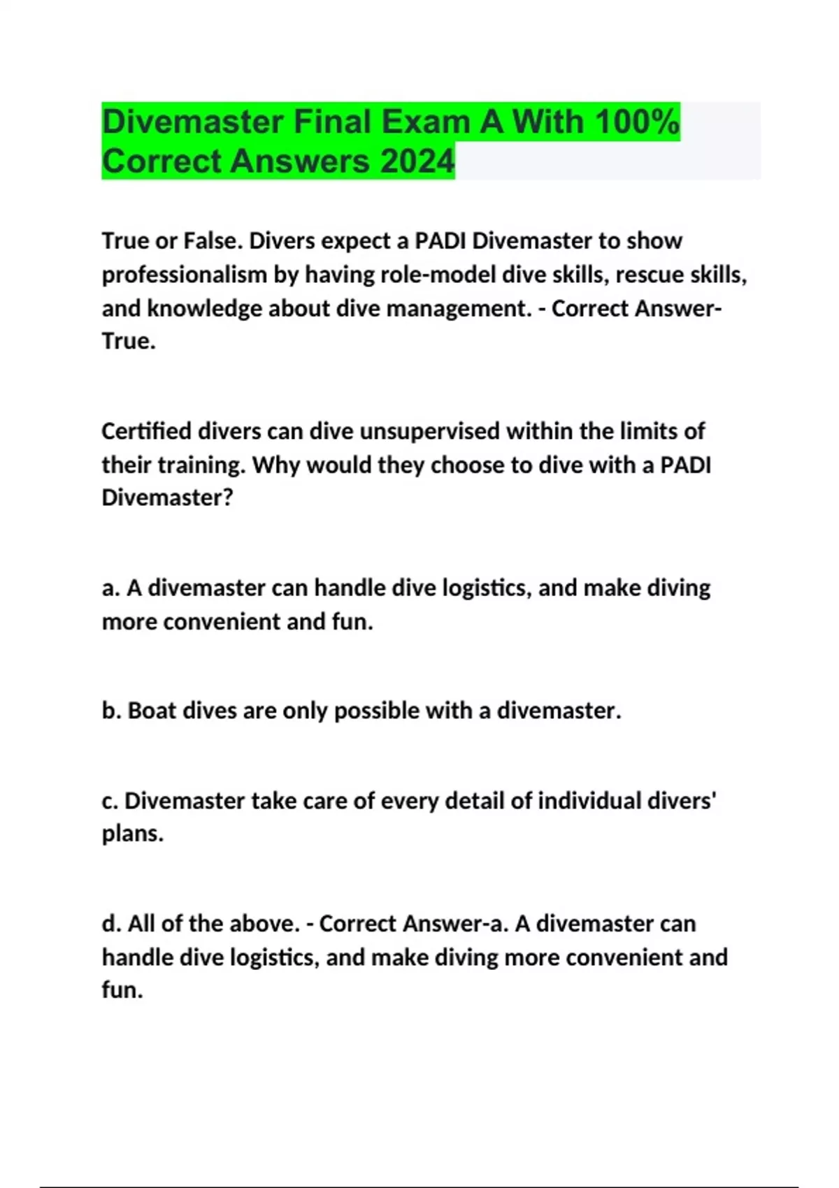 Divemaster Final Exam A With 100% Correct Answers 2024