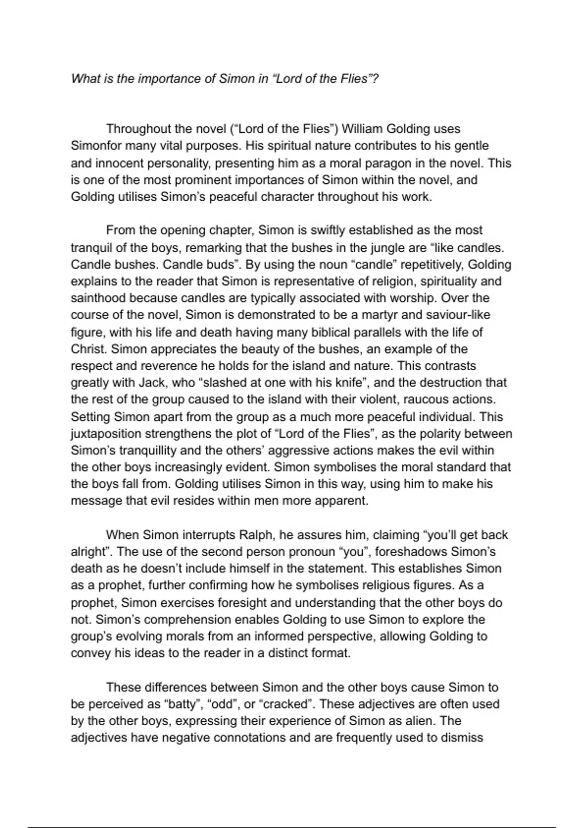 not. Simon’s comprehension enables Golding to use Simon to explore the