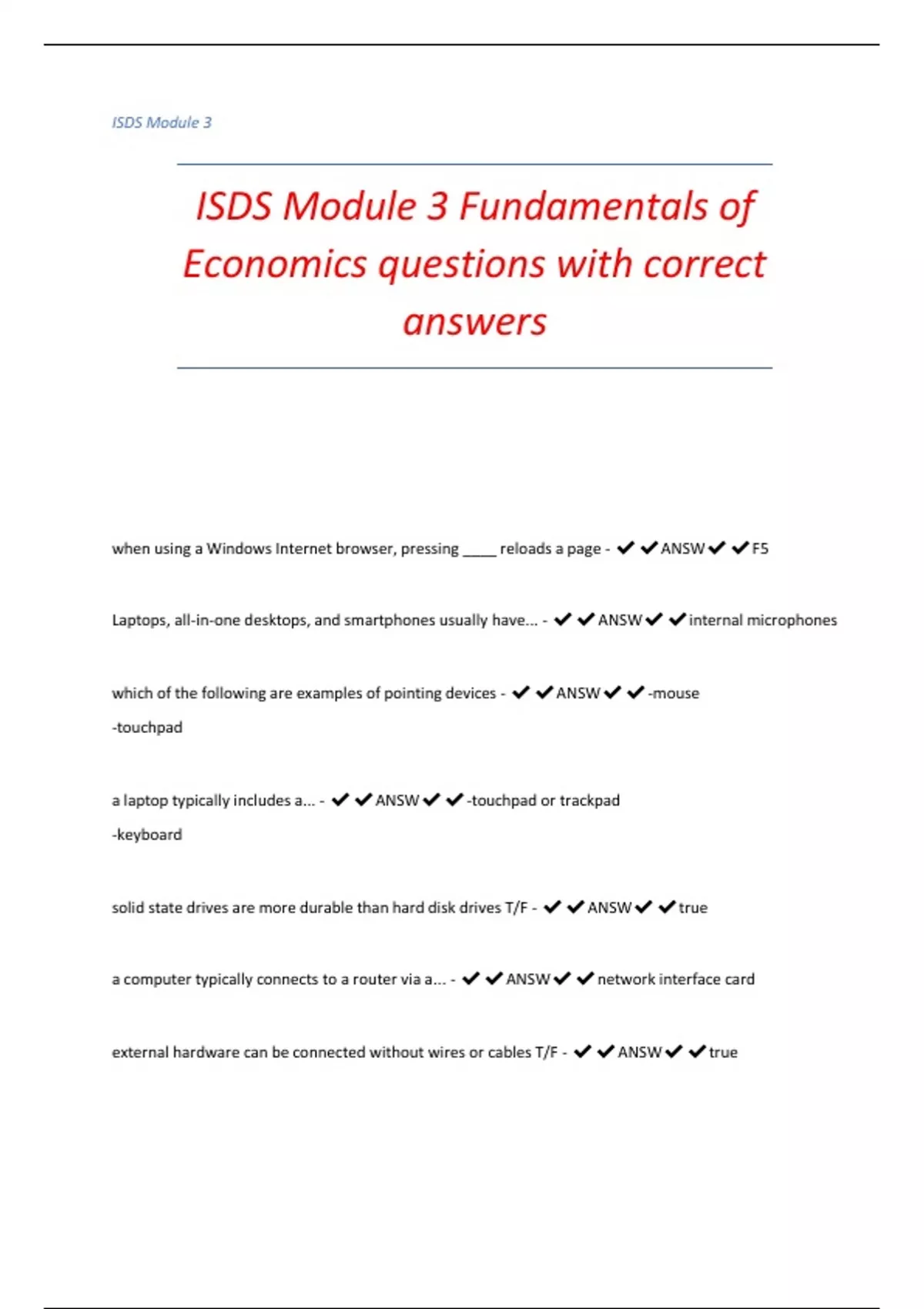 SDS Module 3 Fundamentals of Economics questions with correct answers