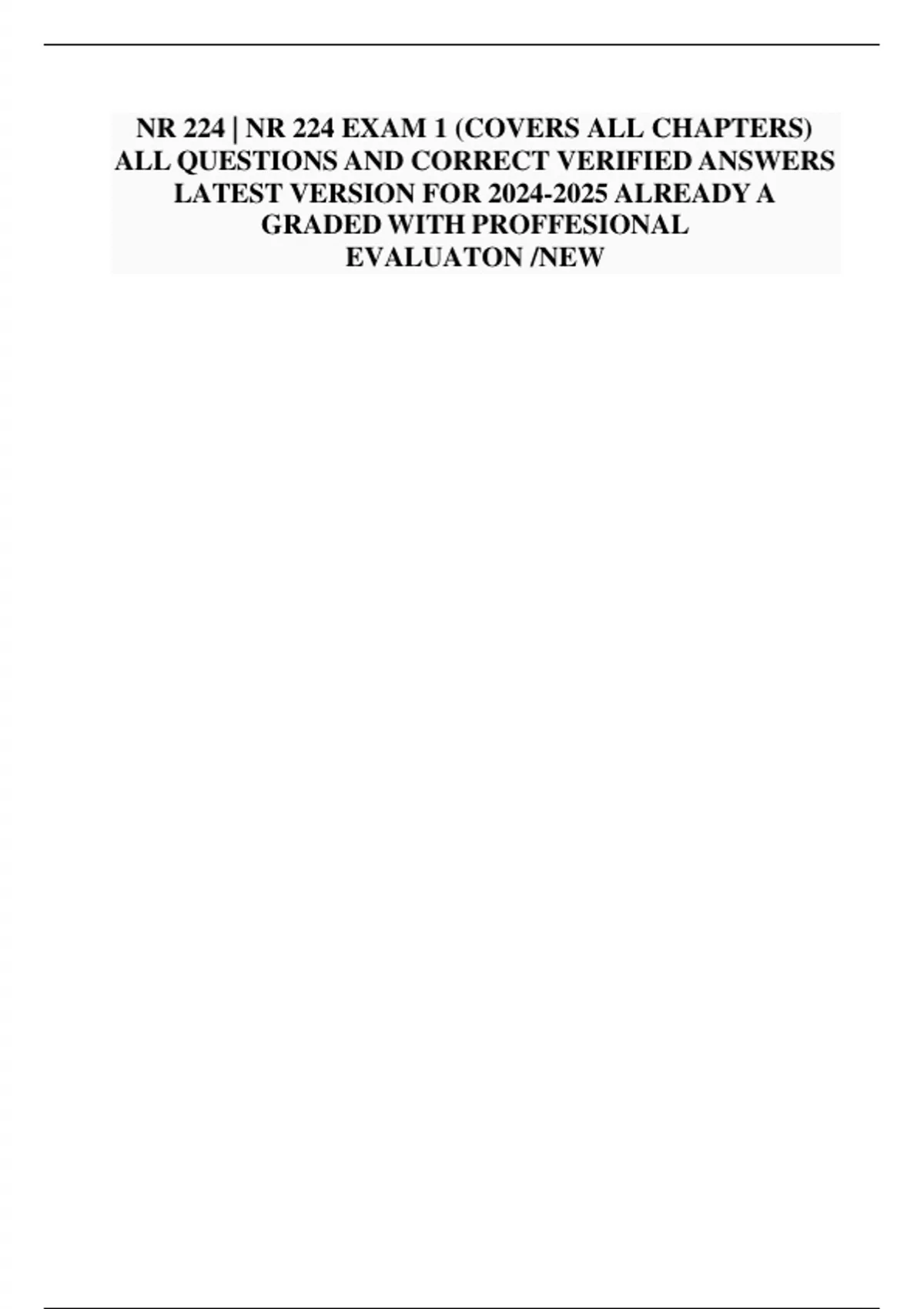NR 224 | NR 224 EXAM 1 (COVERS ALL CHAPTERS) ALL QUESTIONS AND CORRECT VERIFIED ANSWERS LATEST VERSION FOR ALREADY A GRADED WITH PROFFESIONAL EVALUATON /NEW