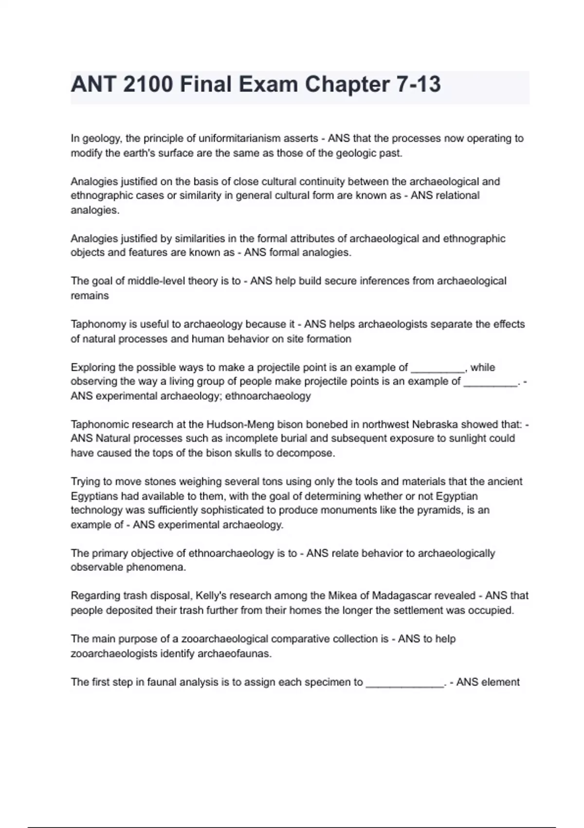 ANT 2100 Final Exam Chapter 7-13 2024/2025 Questions & Answers Guaranteed Pass.