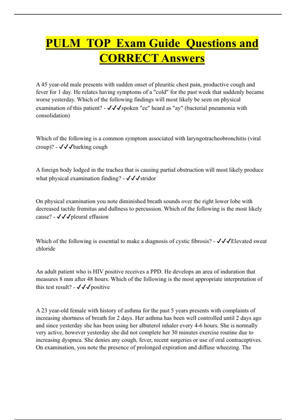 PULM TOP Exam Guide Questions and CORRECT Answers