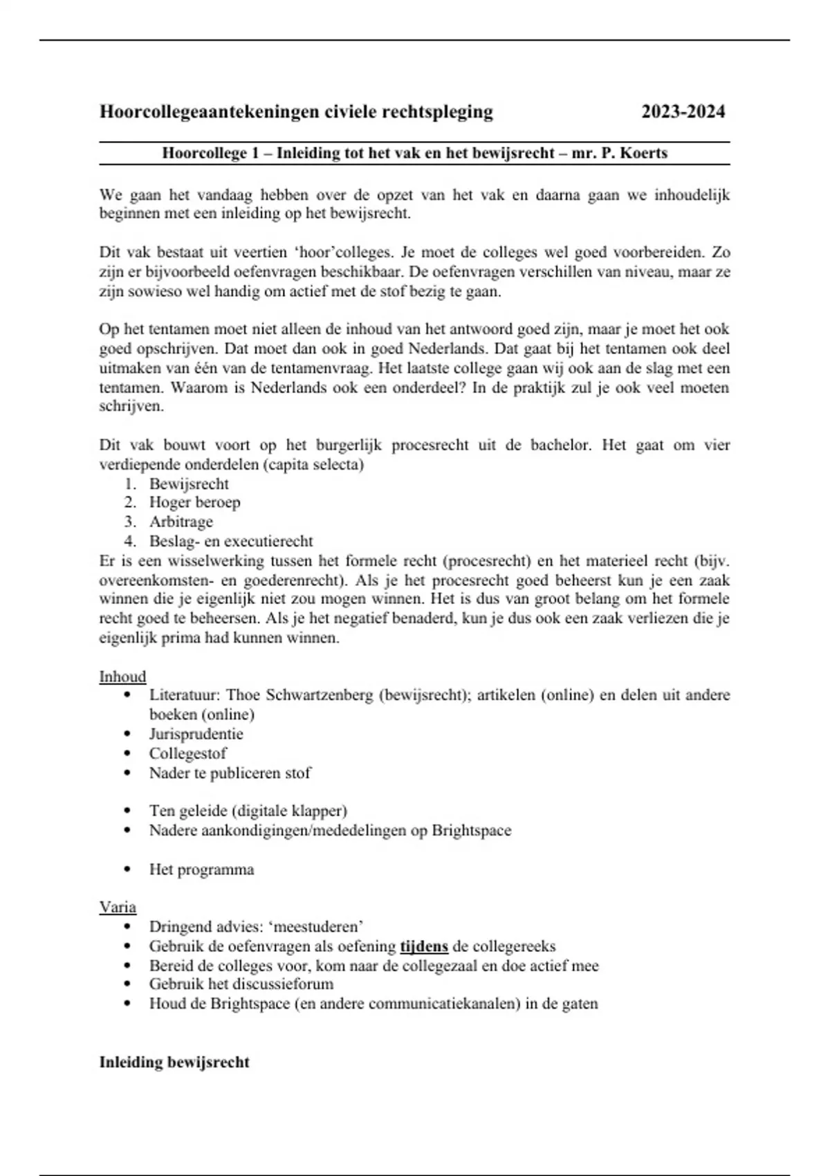 Hoorcollege 1 – Inleiding tot het vak en het bewijsrecht – mr. P. Koerts