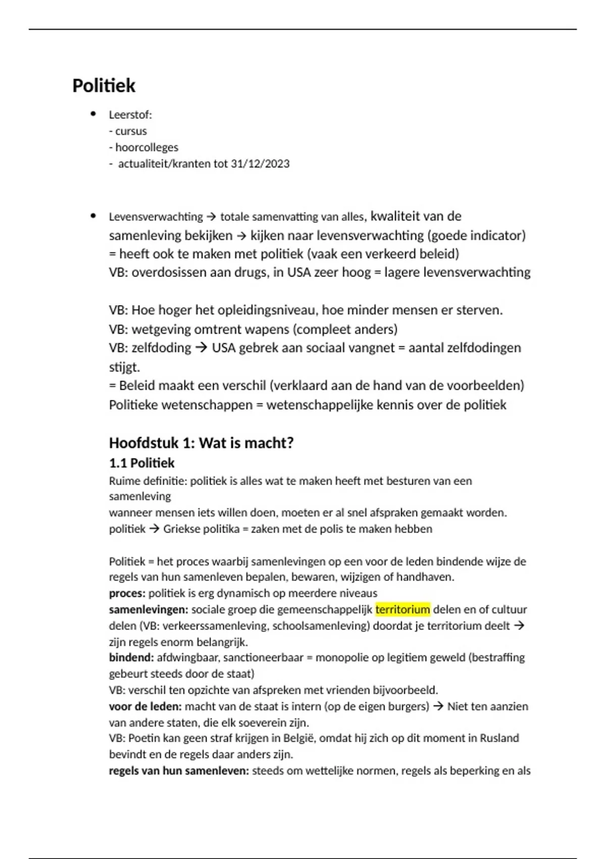 Dus: politiek = alles wat te maken heeft met het besturen van een territoriaal