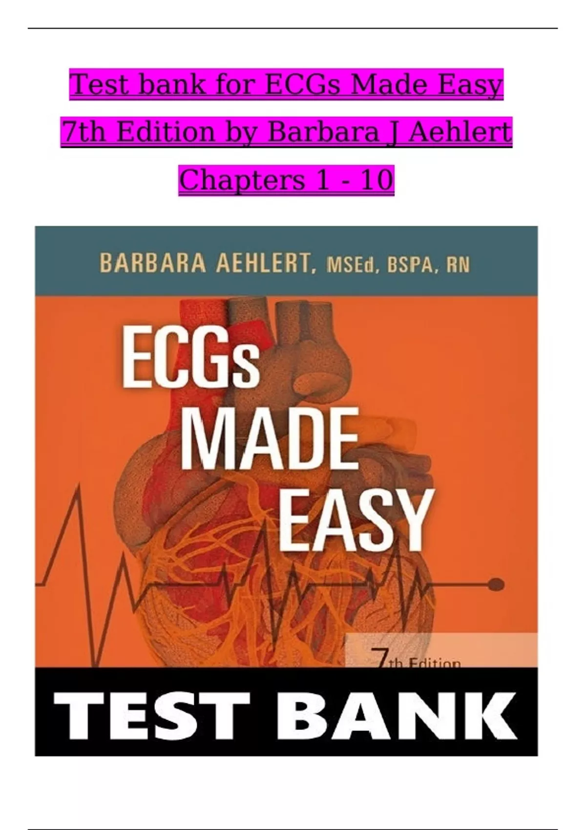 TEST BANK For ECGs Made Easy, 7th Edition by Barbara J Aehlert, All Chapters 1 - 10, Complete Newest Version