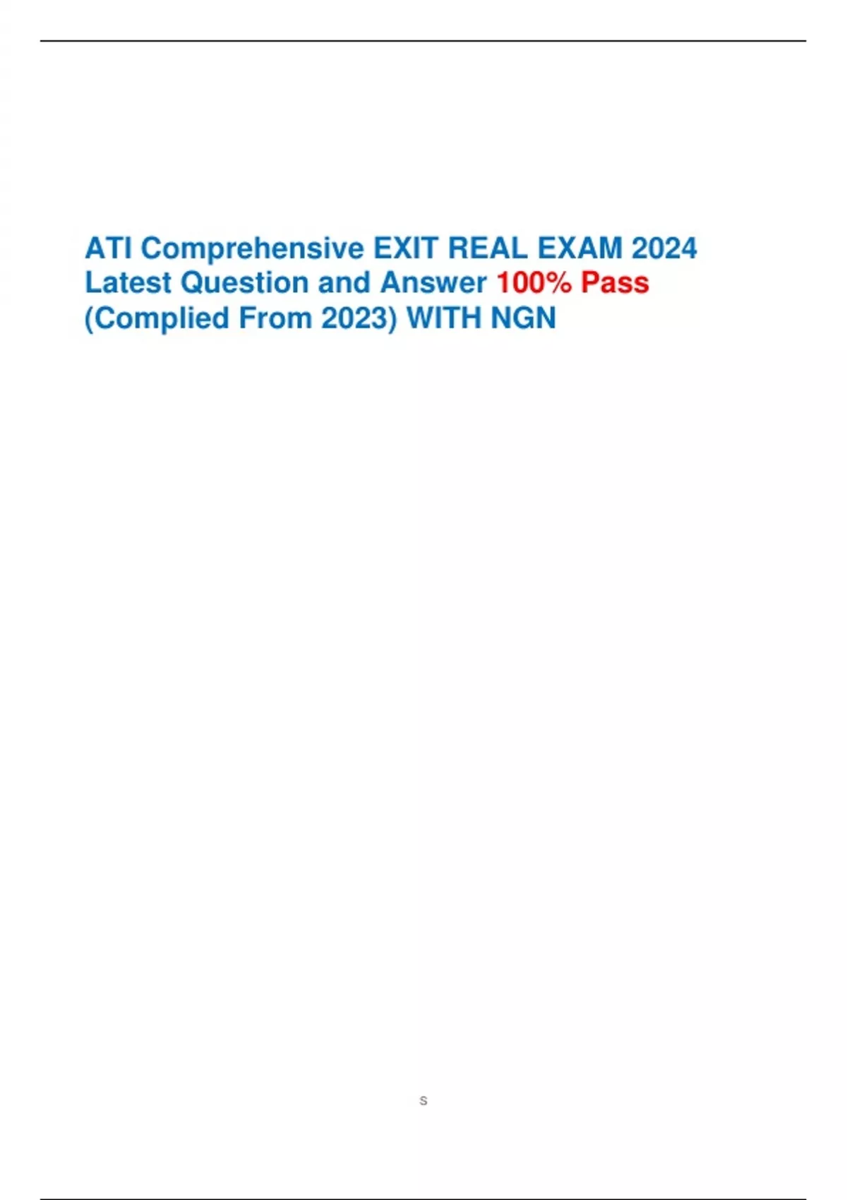 ATI Comprehensive EXIT REAL EXAM 2024 Latest Question and Answer 100% Pass (Complied From 2023) WITH NGN