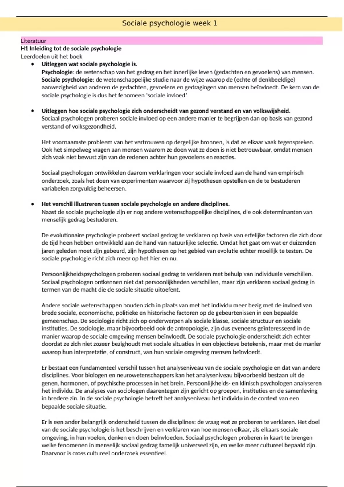 Sociale psychologie week 1