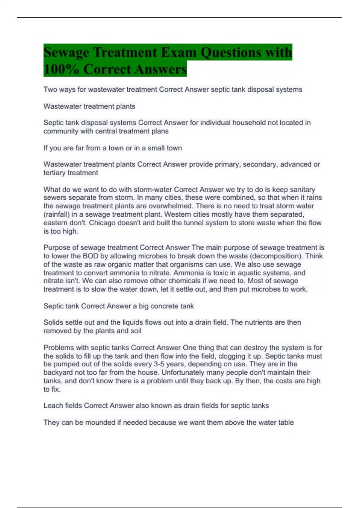 Sewage Treatment Exam Questions with 100% Correct Answers