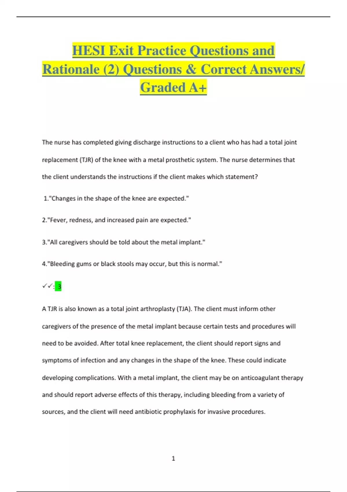 HESI Exit Practice Questions and Rationale (2) Questions & Correct Answers/ Graded A+