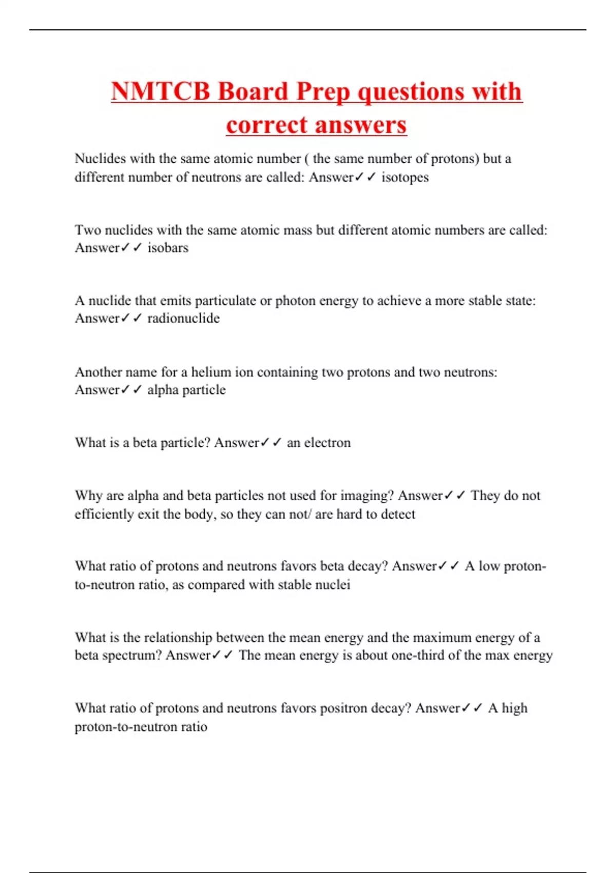 NMTCB Board Prep questions with correct answers