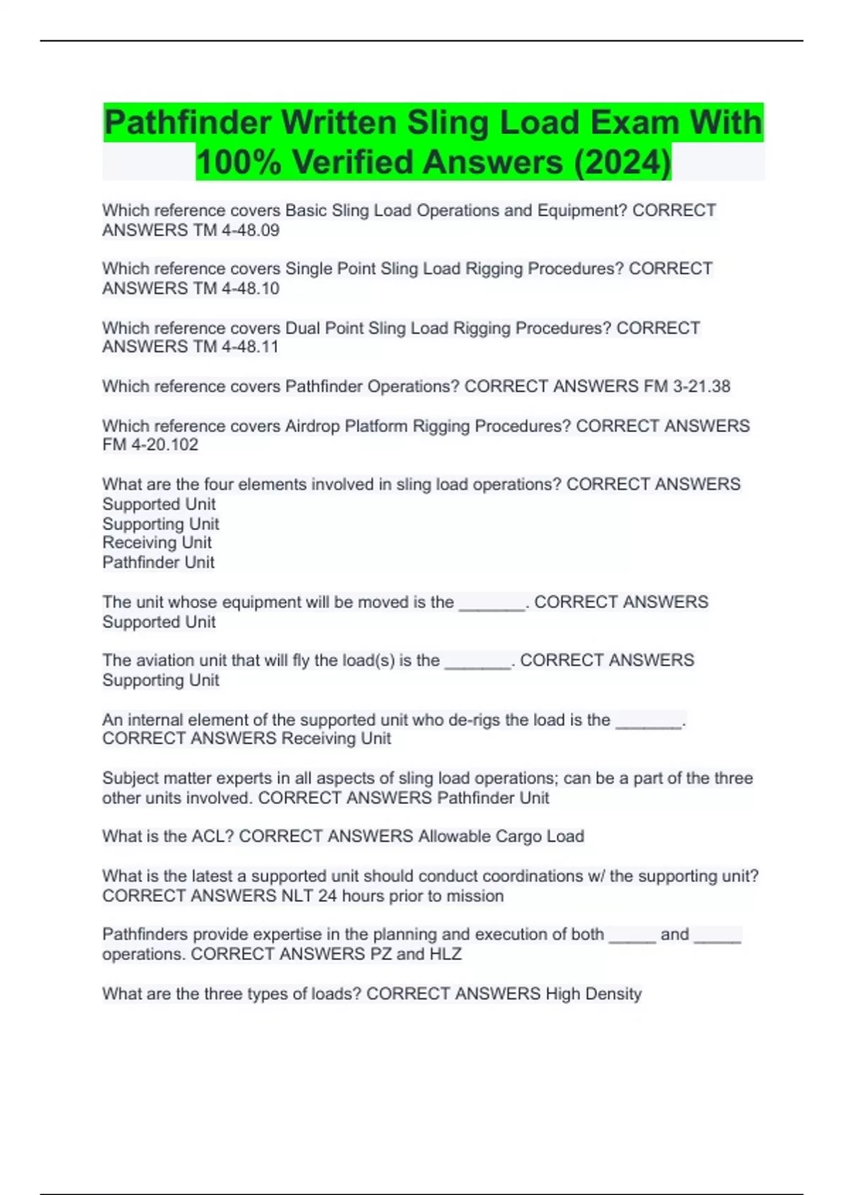 Pathfinder Written Sling Load Exam With 100% Verified Answers (2024)