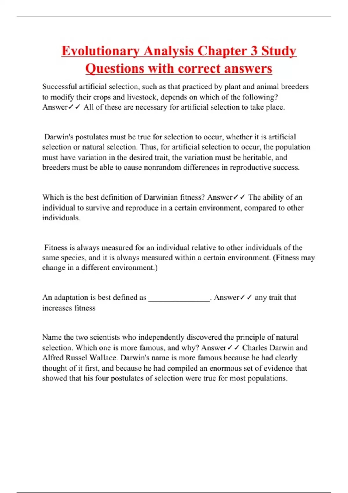 Evolutionary Analysis Chapter 3 Study Questions with correct answers