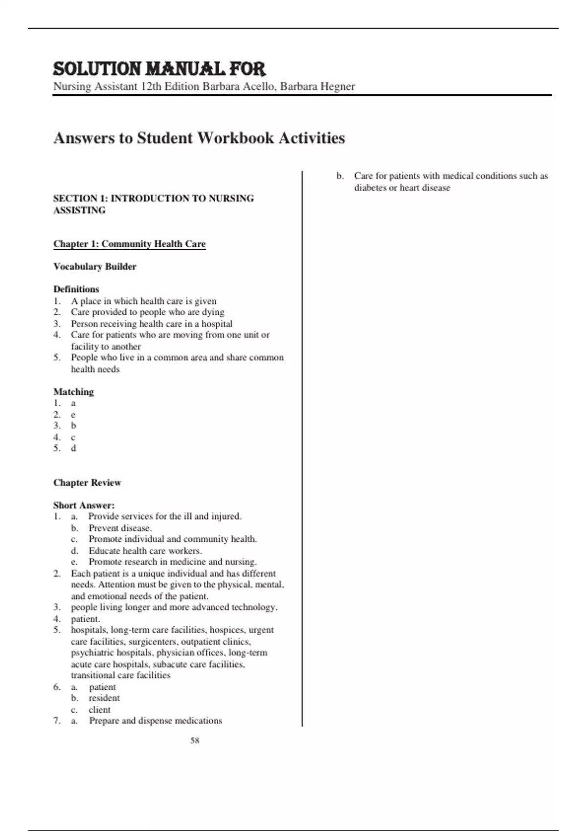 Solution Manual For Nursing Assistant 12th Edition by Barbara Acello, Barbara Hegner