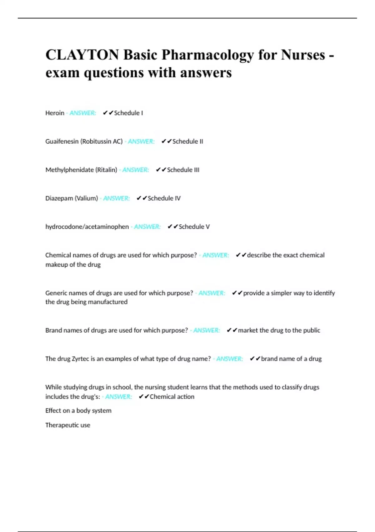 CLAYTON Basic Pharmacology for Nurses -exam questions with answers