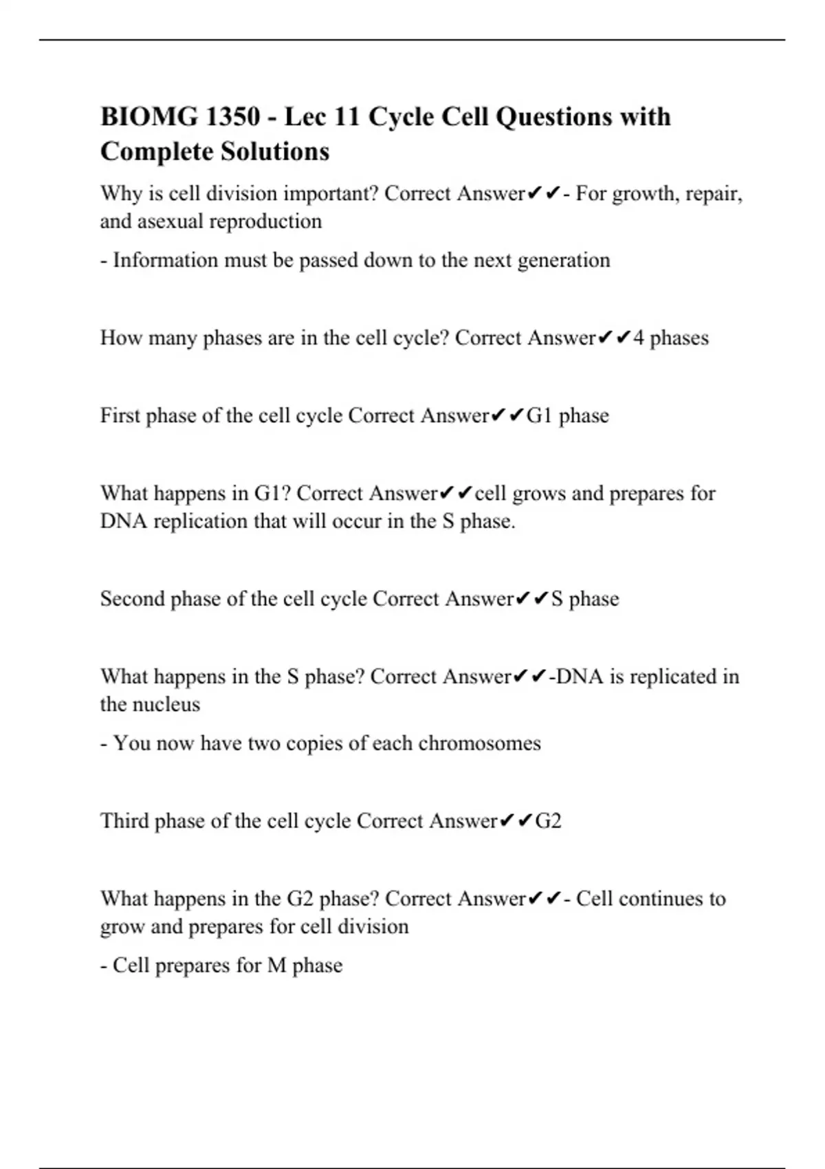 BIOMG 1350 - Lec 11 Cycle Cell Questions with Complete Solutions