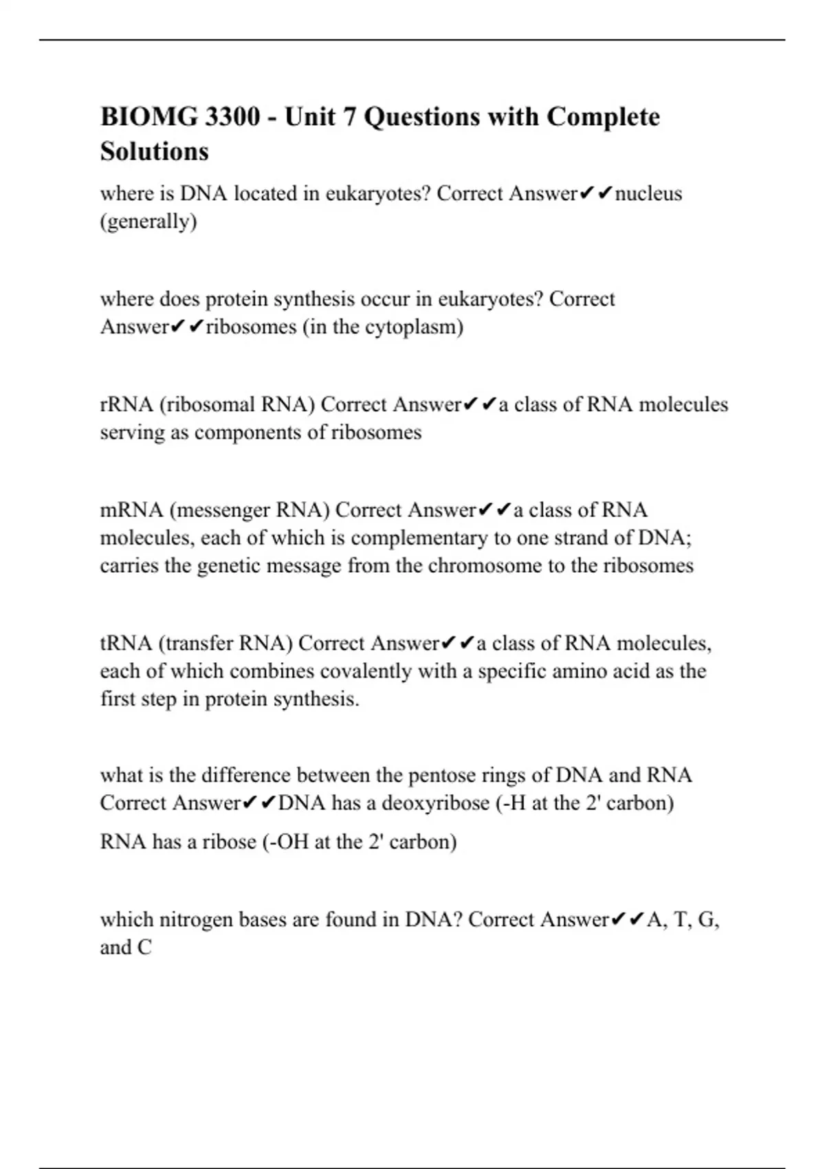 BIOMG 3300 - Unit 7 Questions with Complete Solutions