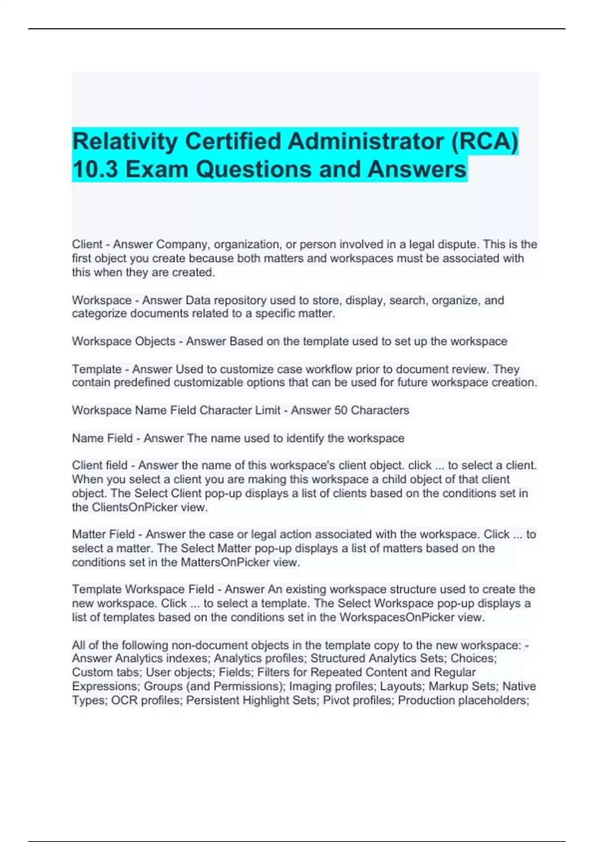 Relativity Certified Administrator (RCA) 10.3 Exam Questions and Answers
