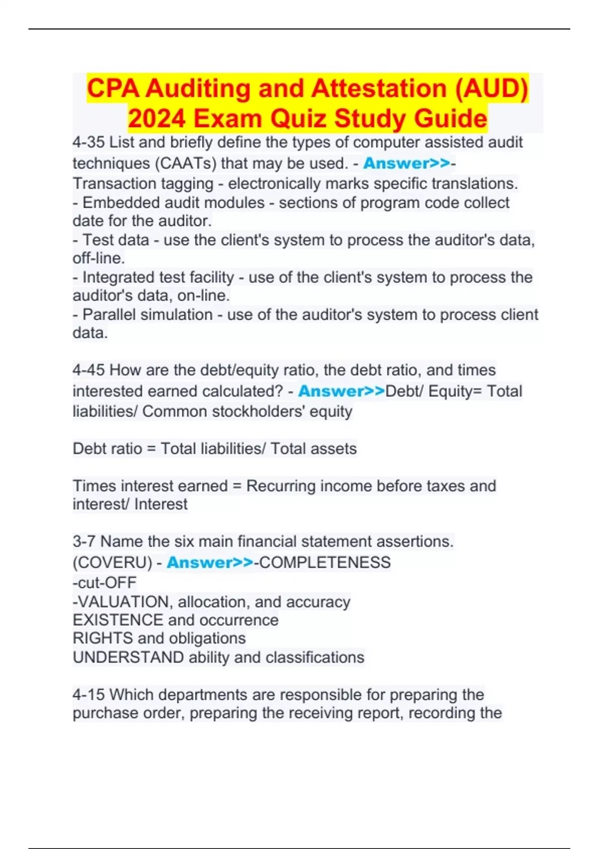 CPA Auditing and Attestation (AUD) 2024 Exam Quiz Study Guide