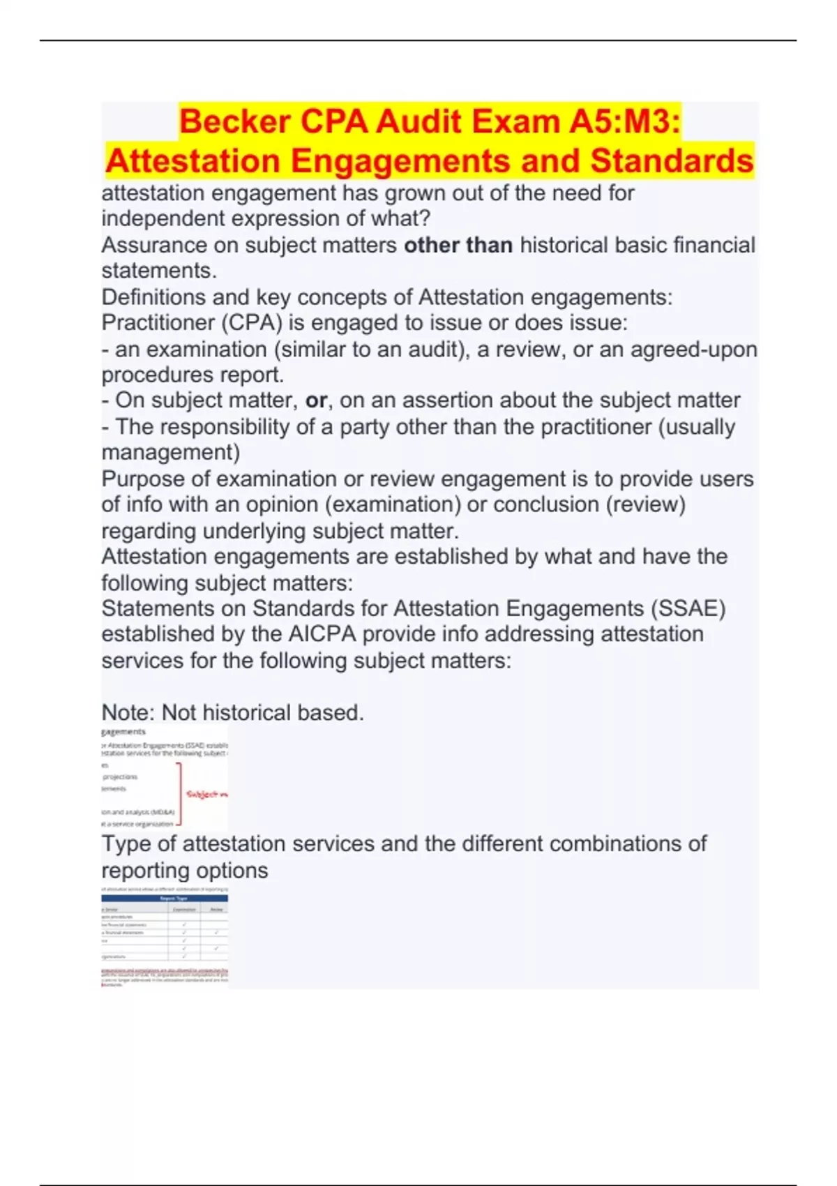 Becker CPA Audit Exam A5:M3: Attestation Engagements and Standards