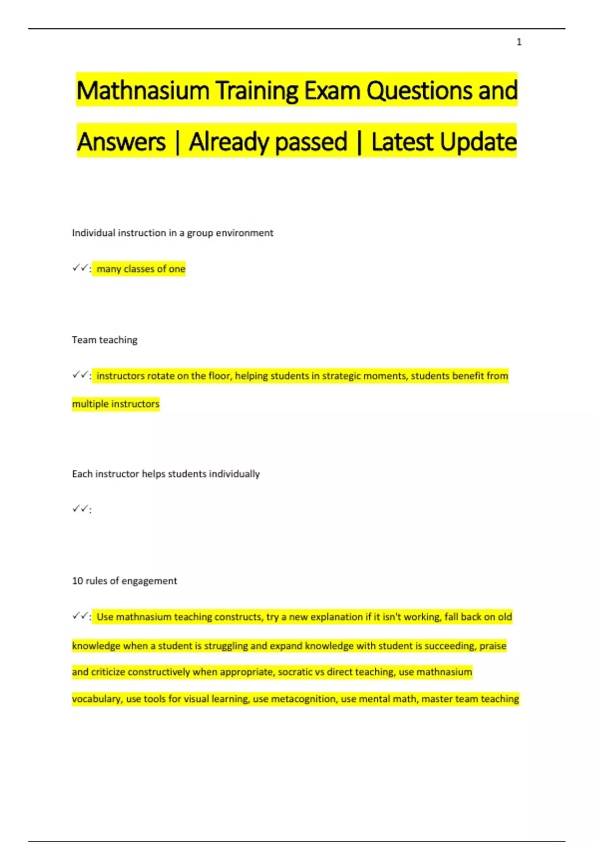 Mathnasium Training Exam Questions and Answers | Already passed | Latest Update