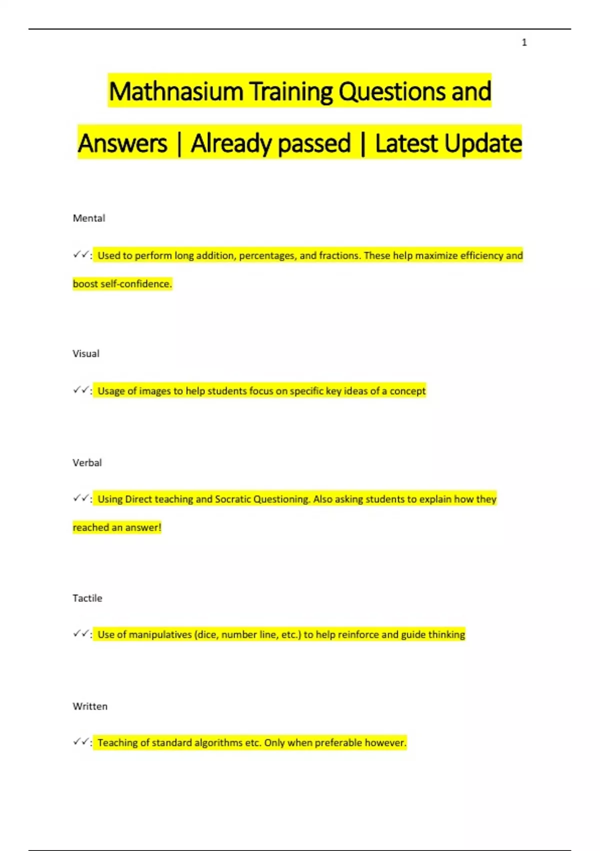 Mathnasium Training Questions and Answers | Already passed | Latest Update