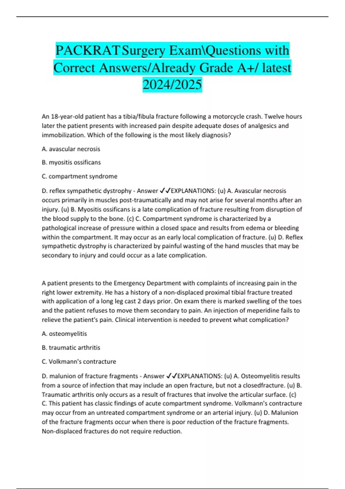 PACKRATSurgery ExamQuestions with Correct Answers/Already Grade A+/ latest 2024/2025