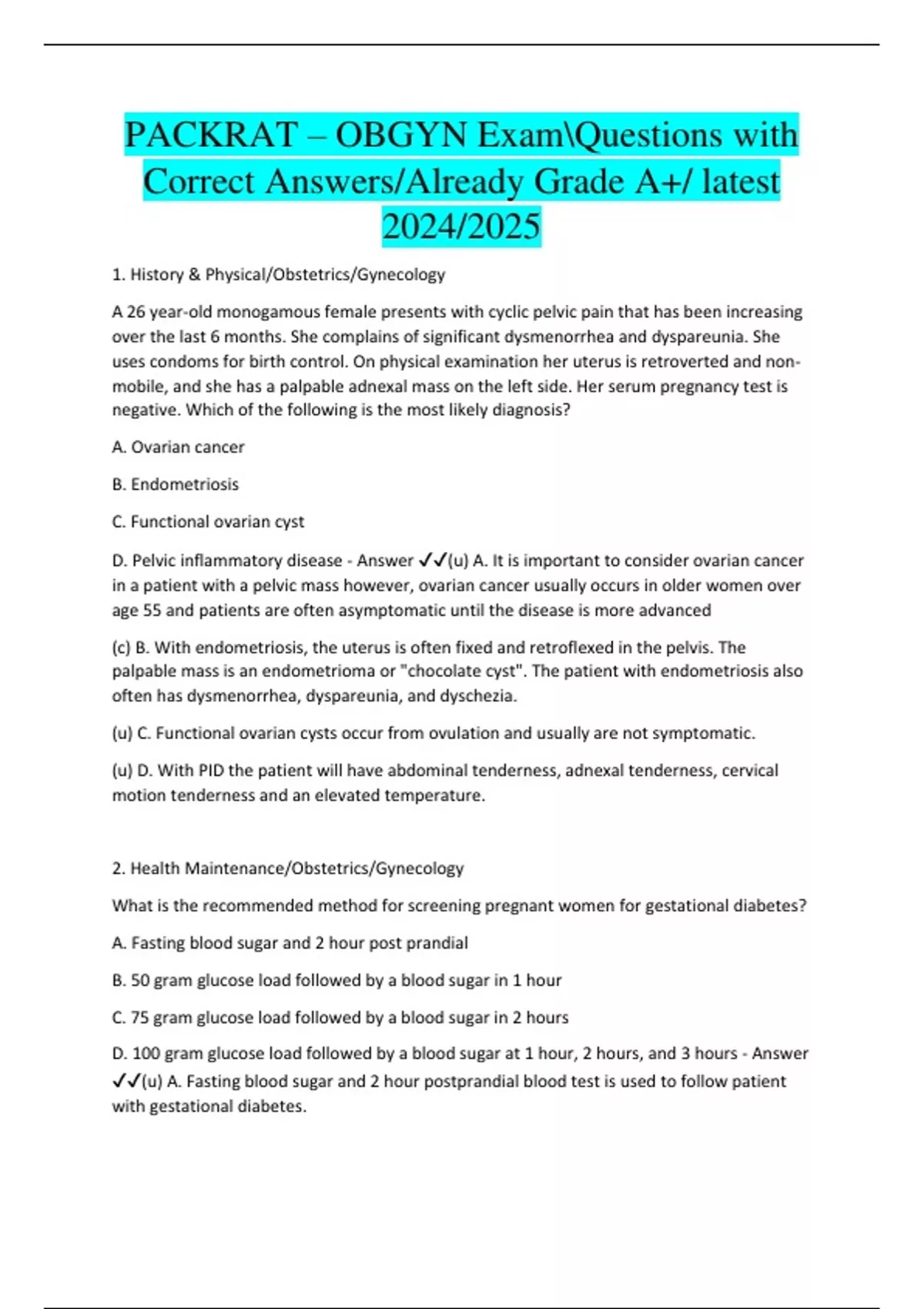 PACKRAT – OBGYN ExamQuestions with Correct Answers/Already Grade A+/ latest 2024/2025