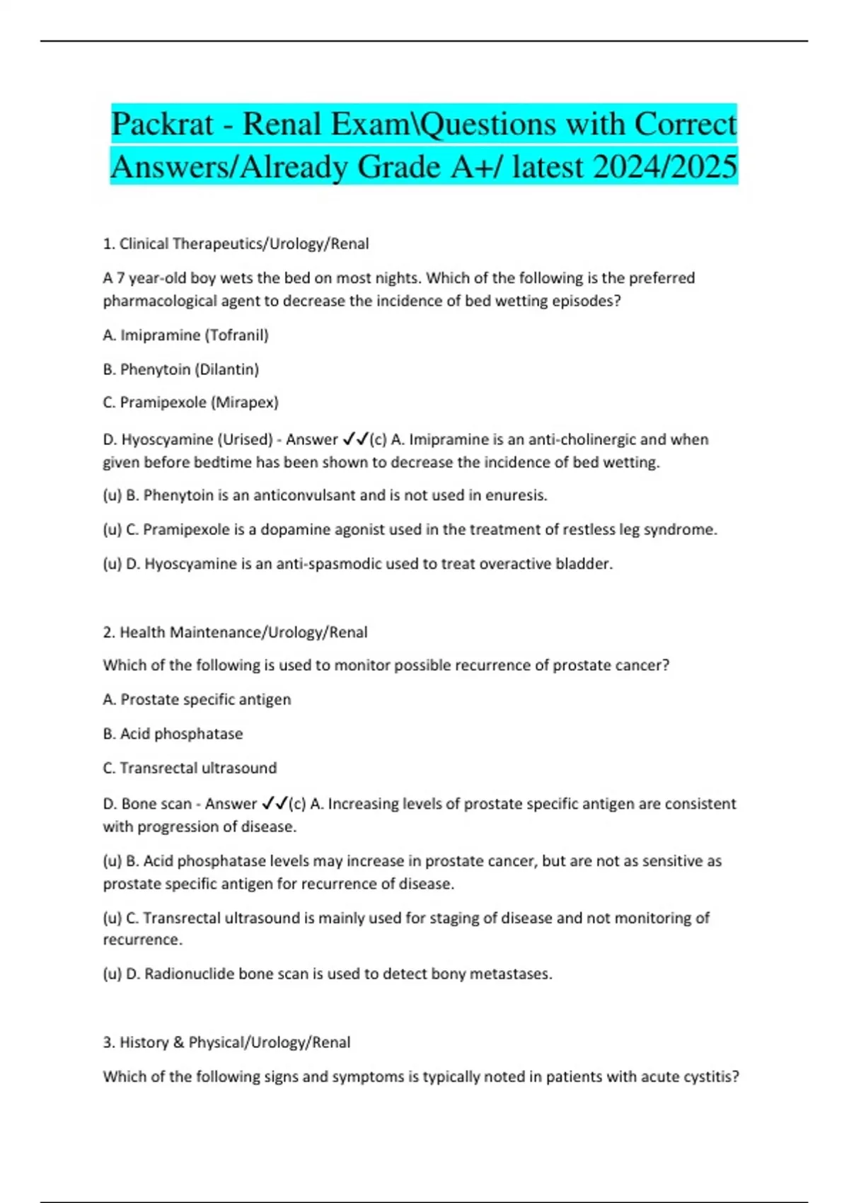 Packrat - Renal ExamQuestions with Correct Answers/Already Grade A+/ latest 2024/2025
