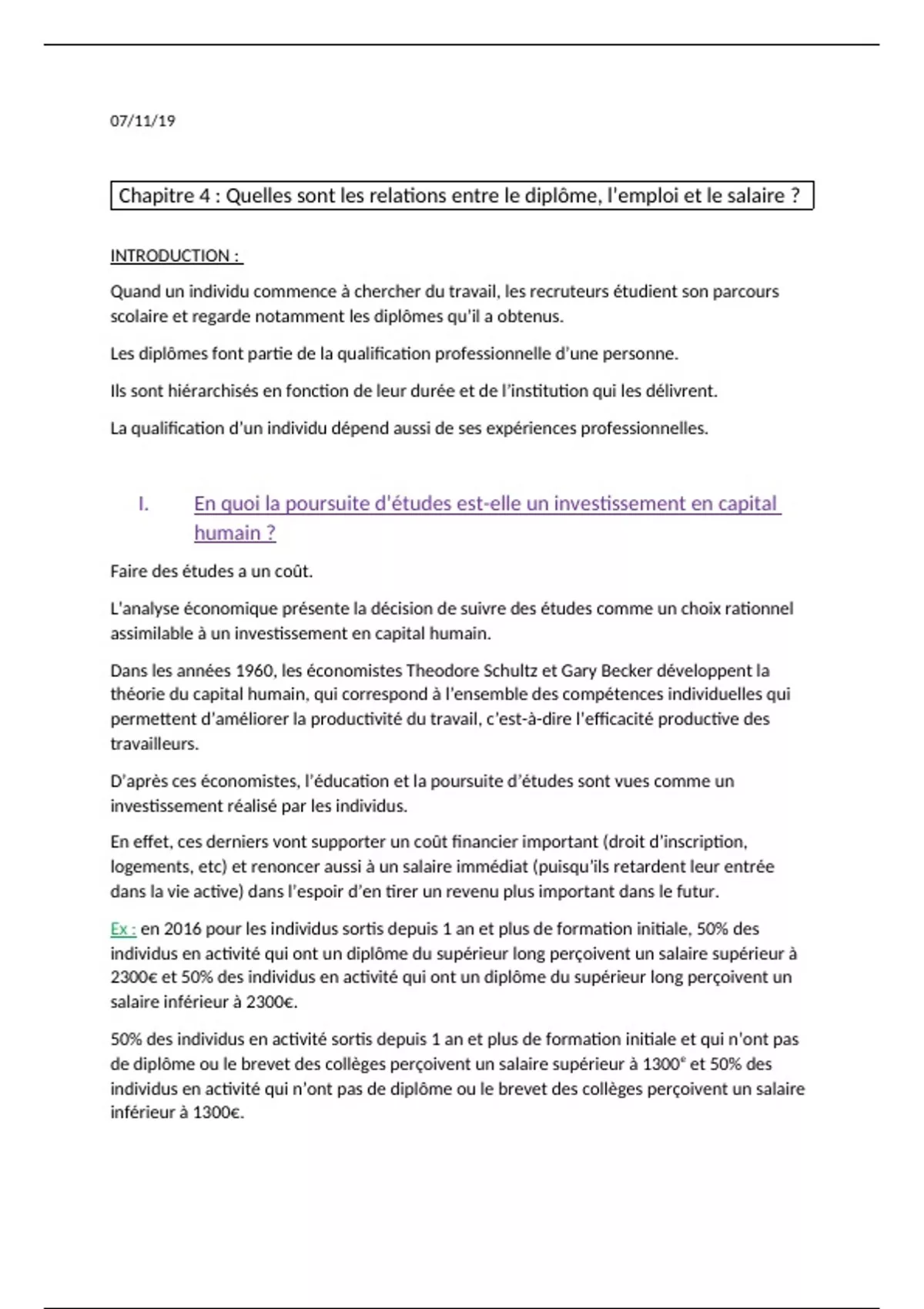 I. En quoi la poursuite d’études est-elle un investissement en capital