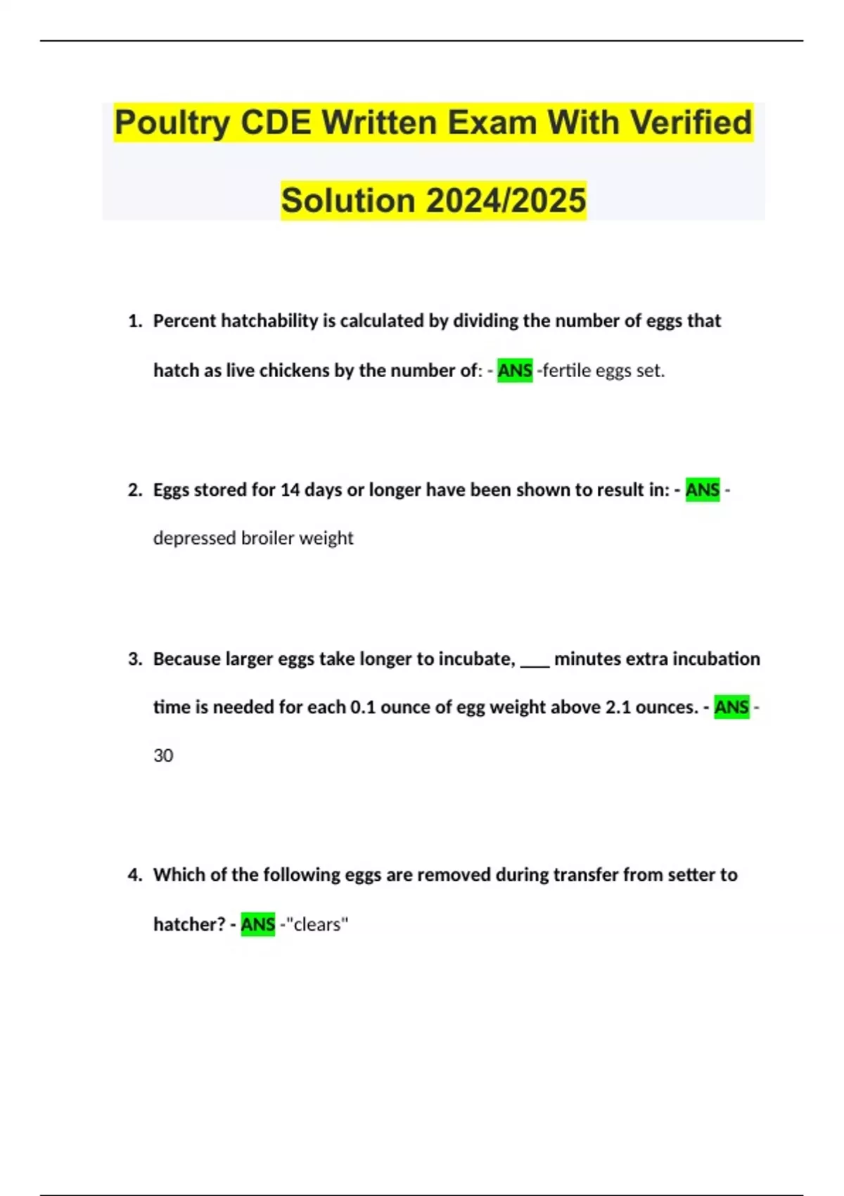 Poultry CDE Written Exam With Verified Solution 2024/2025
