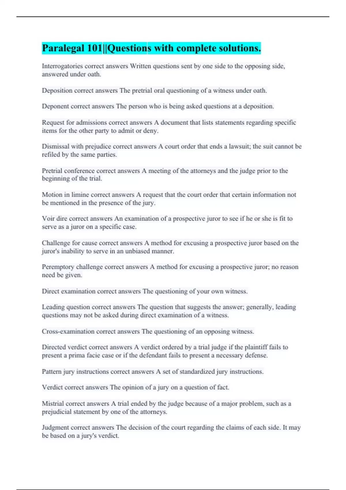 Paralegal 101||Questions with complete solutions.