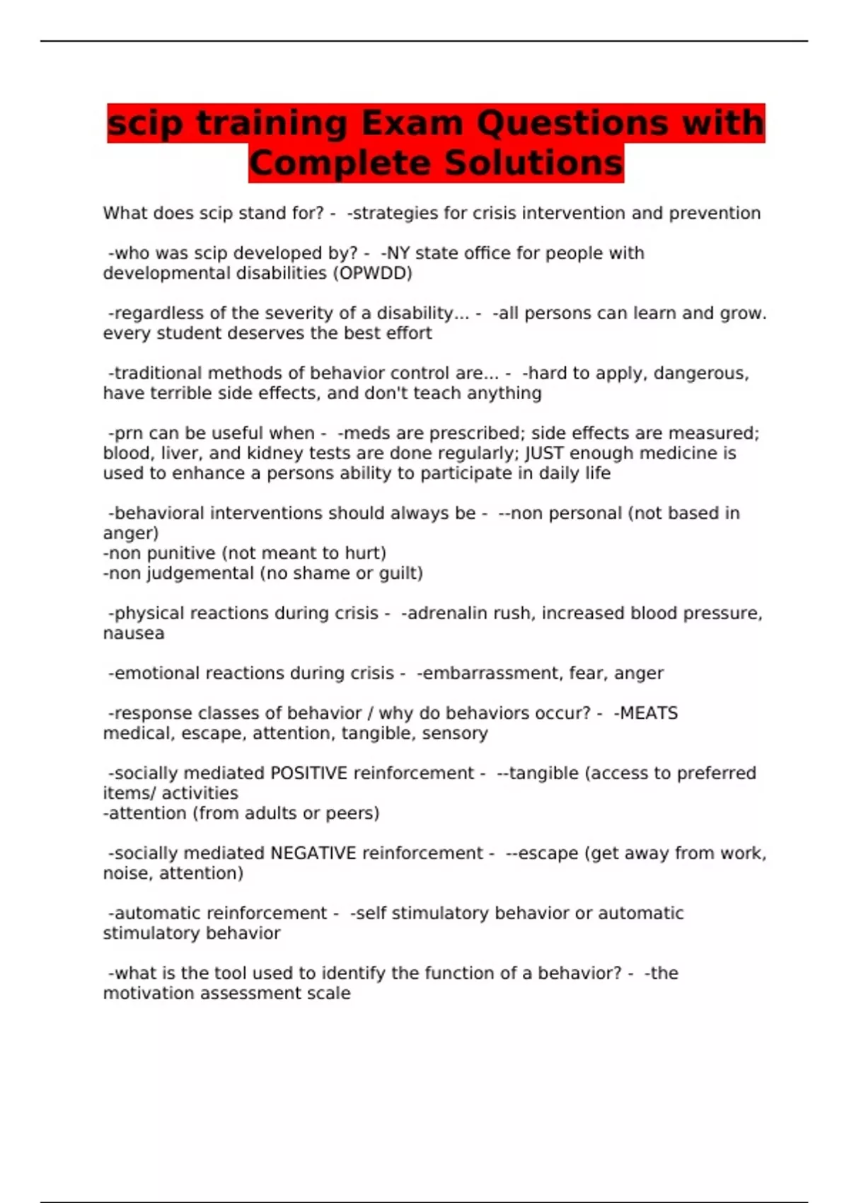 scip training Exam Questions with Complete Solutions