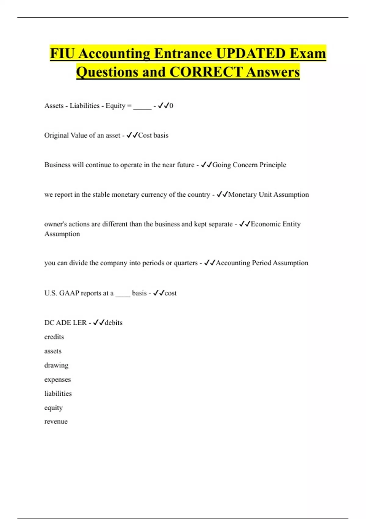 FIU Accounting Entrance UPDATED Exam Questions and CORRECT Answers