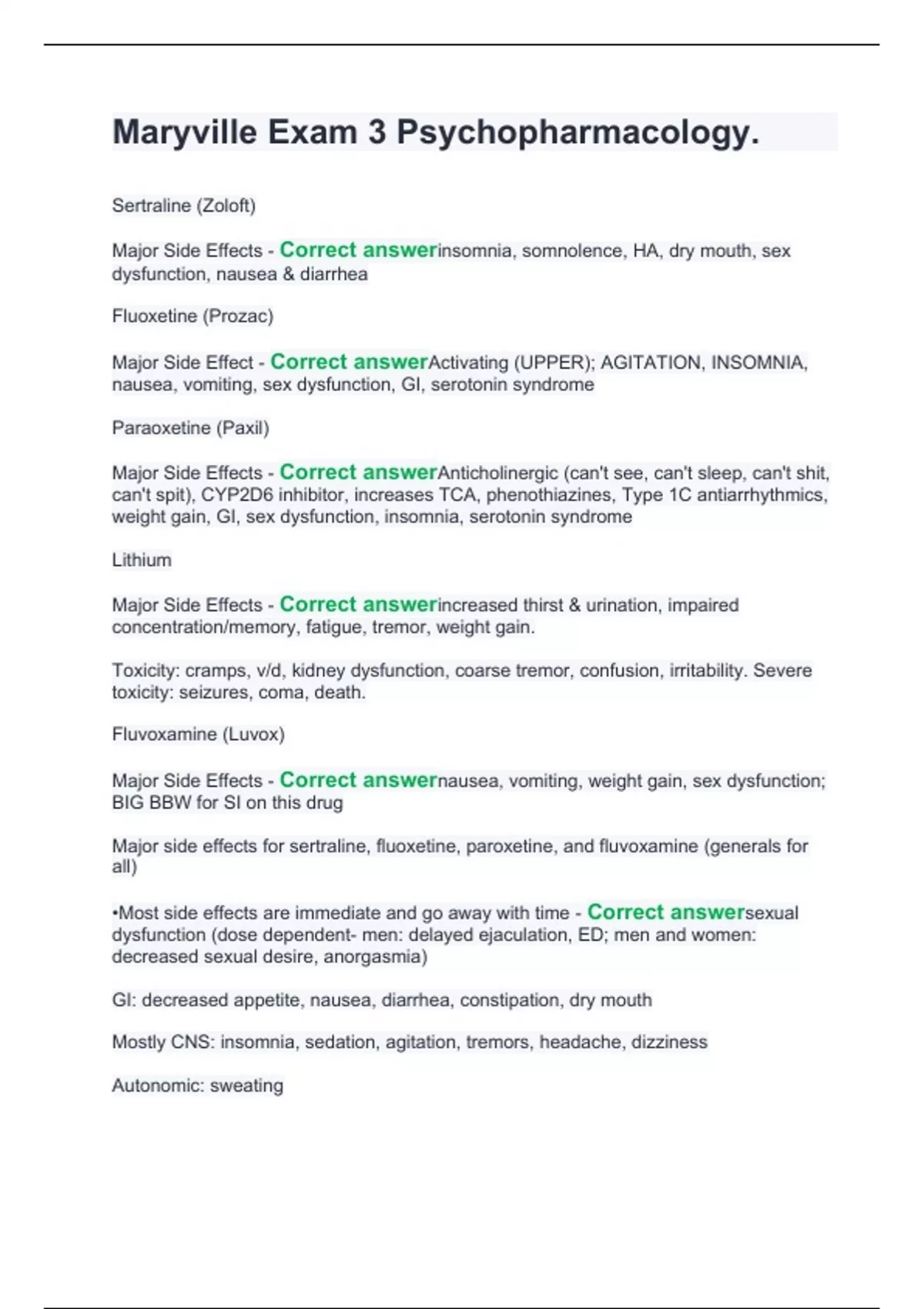 Maryville Exam 3 Psychopharmacology
