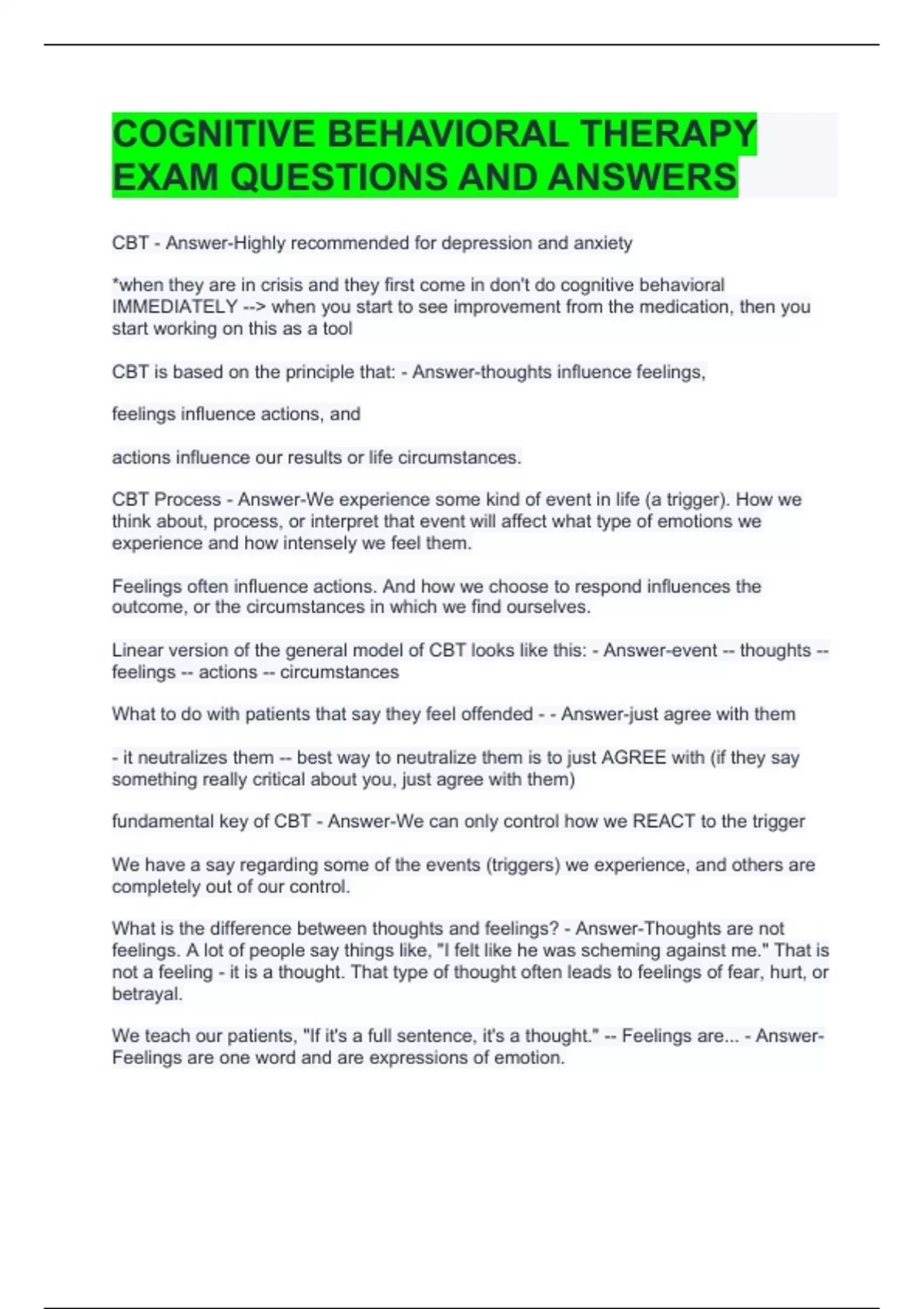 CBT is based on the principle that: - Answer-thoughts influence feelings,