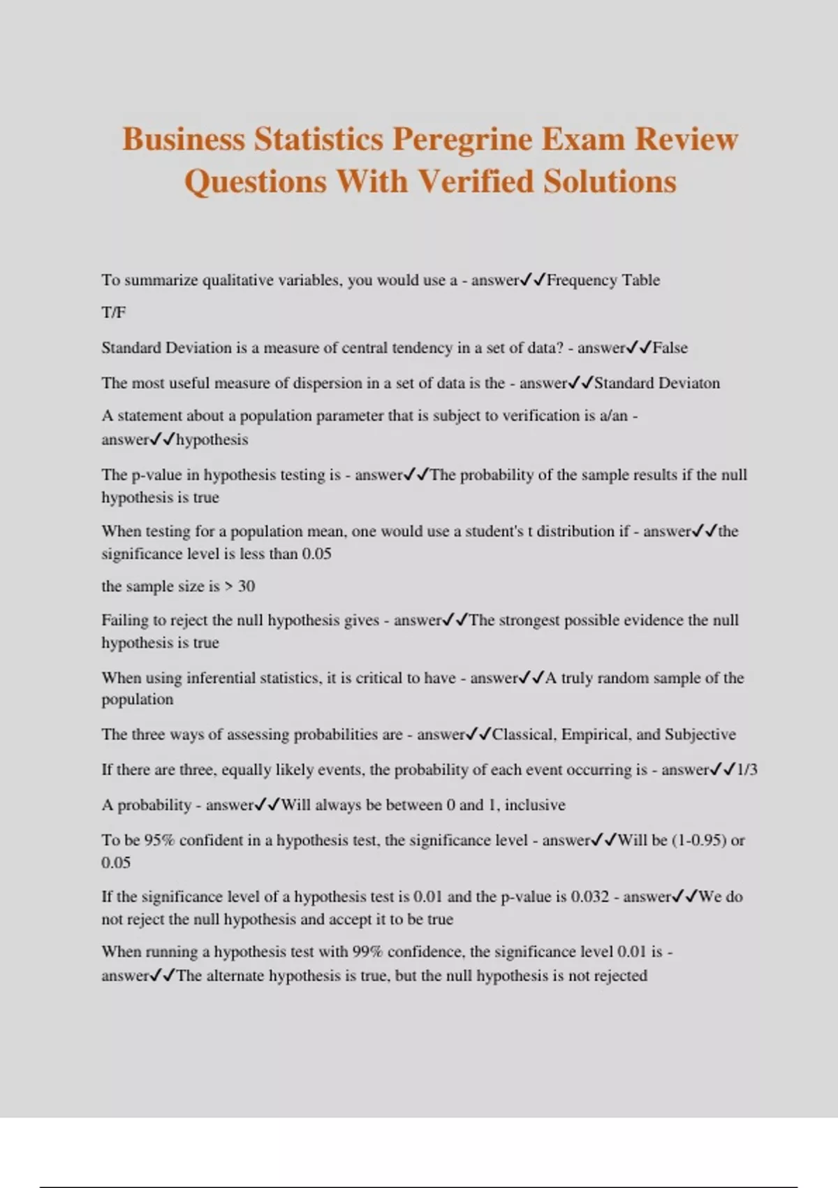 Business Statistics Peregrine Exam Review Questions With Verified Solutions