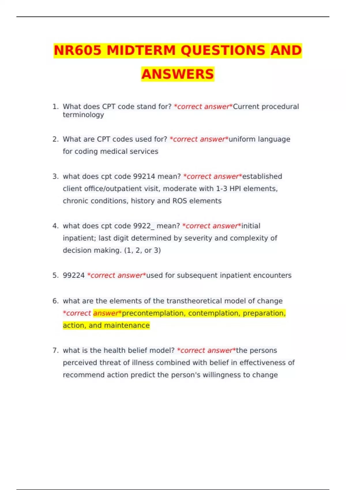 NR605 MIDTERM QUESTIONS WITH CORRECT ANSWERS